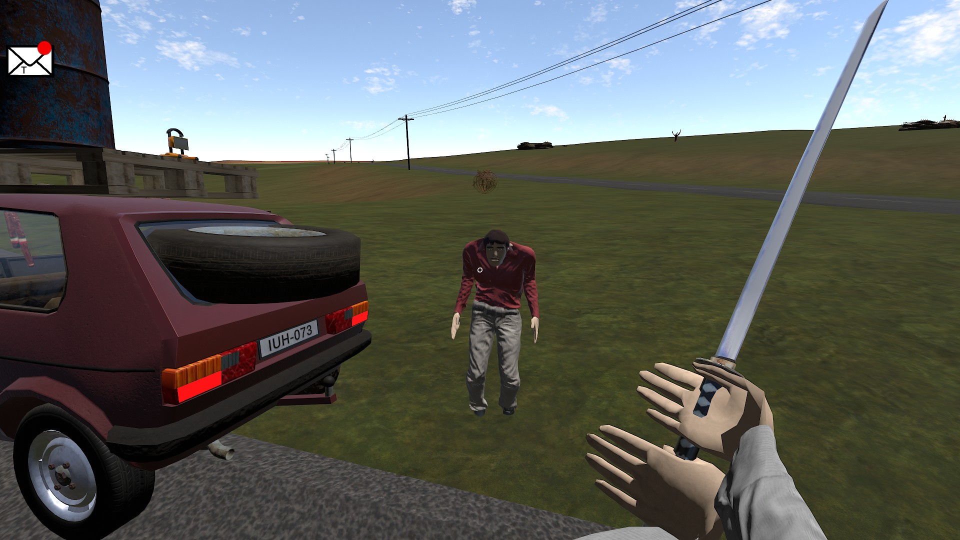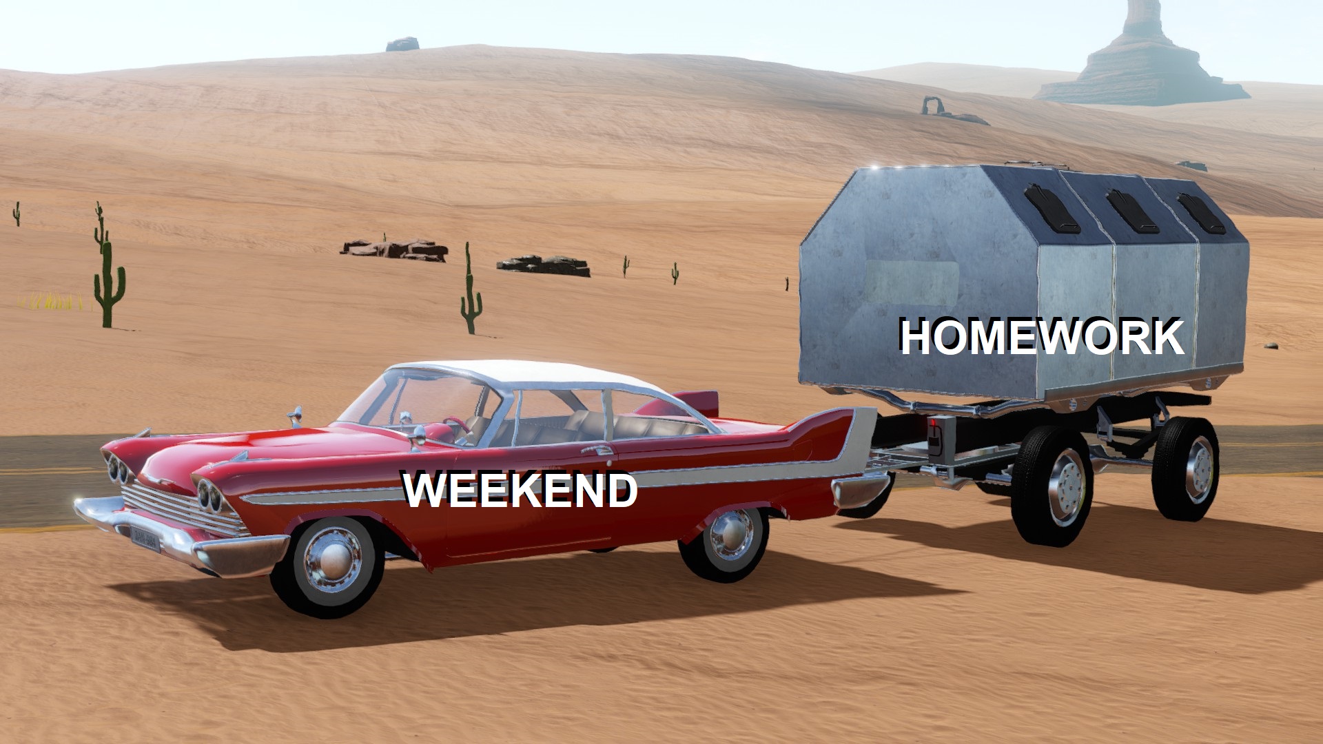 Random generated open world semi-post apocalyptic survival car driving game.