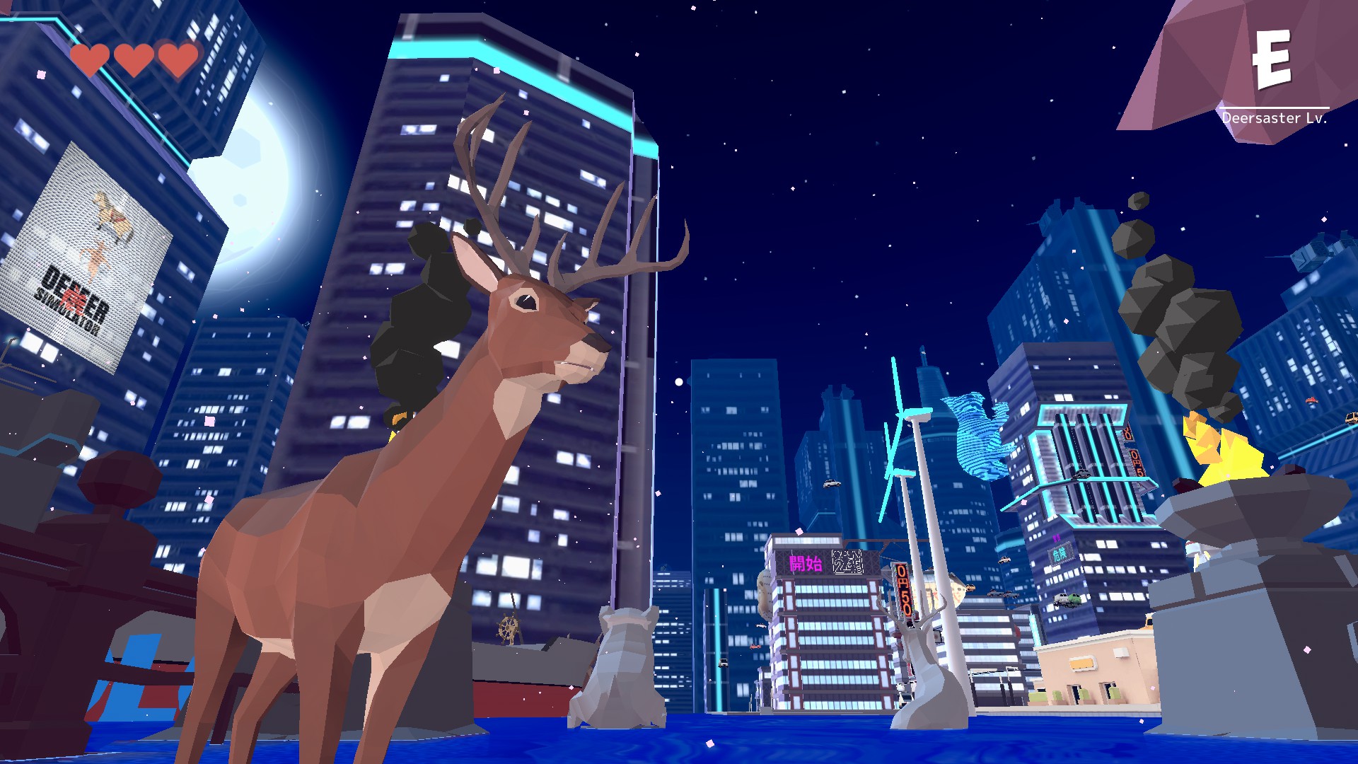 Put simply, DEEEER Simulator is a “Slow-Life Town Destruction Game”. You can spend your days enjoying a nice, relaxed frolic here and there together with the other animals around town, or you can choose to relieve some stress and absolutely destroy the town and everything in it.