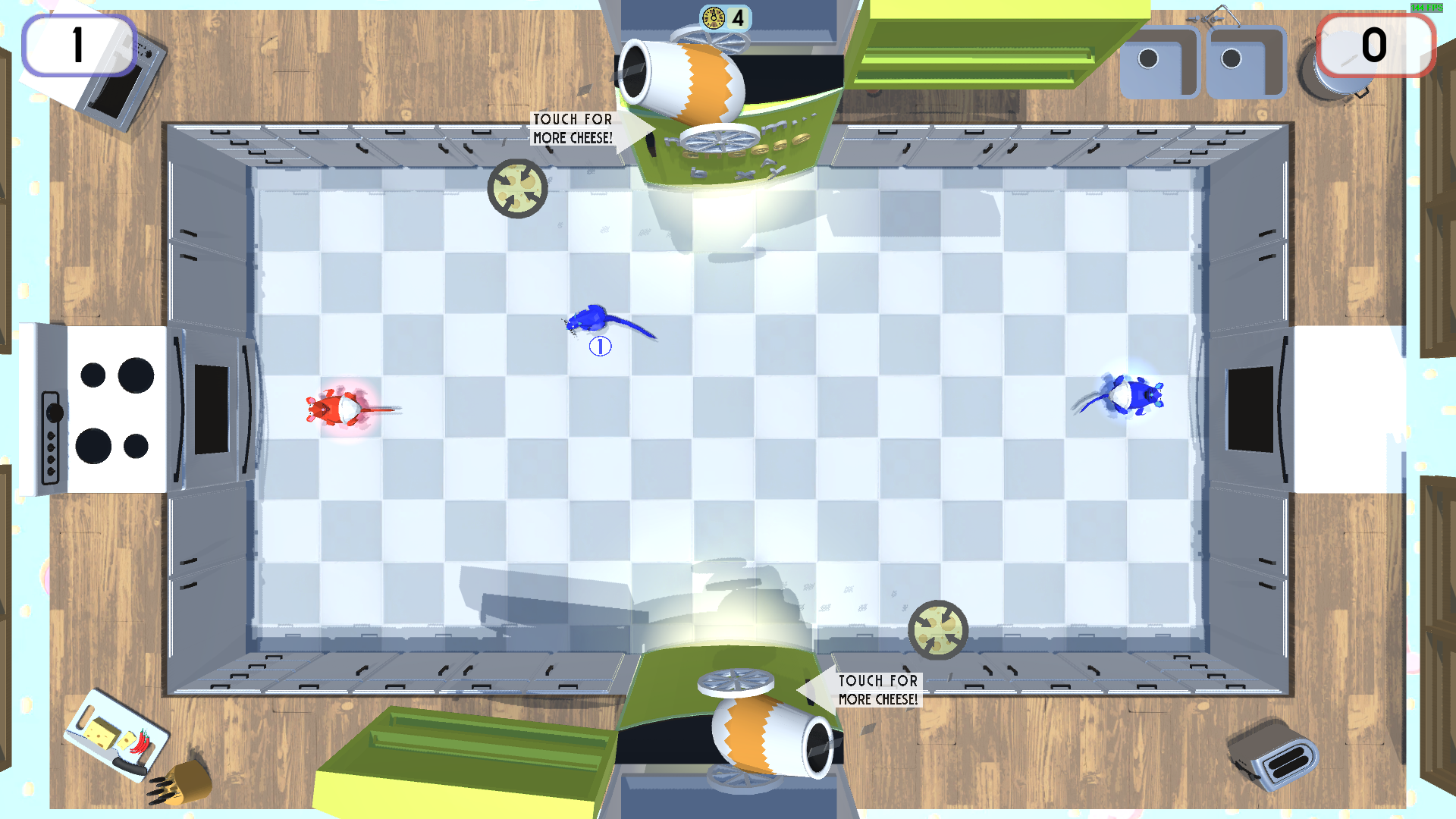 A local team-based multiplayer game for 2-4 players where players control rats and score points by feeding a ball of cheese to their team’s giant baby rat.