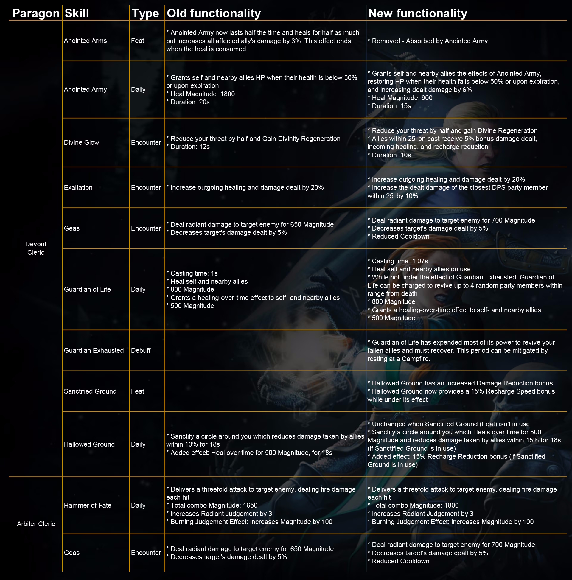 On our Discord, we recently started feedback threads for Barbarians, Rangers, Clerics, and Warlocks. Thank you for all the feedback you provided! Our next Module marks the kick-off of our class changes, and the Cleric is the first one we’ve worked on.