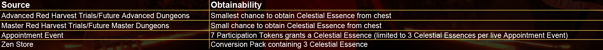 Celestial Essence obtained through Dungeons and Trials is tradeable in the Auction House.