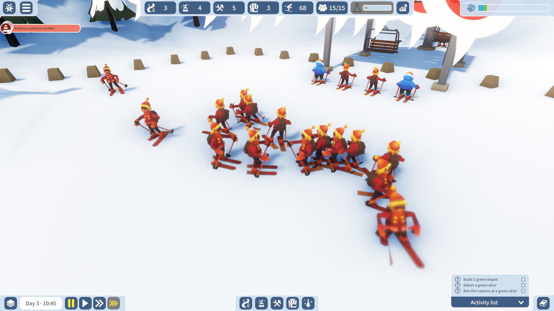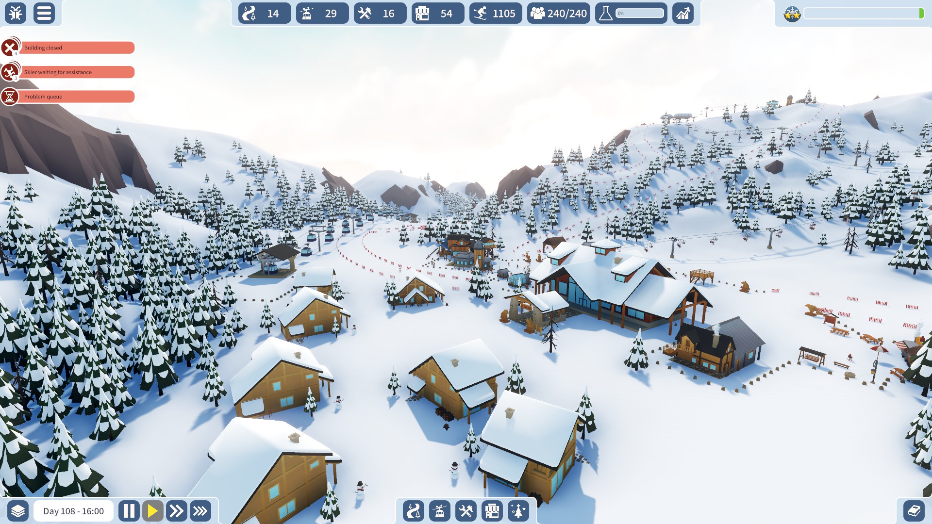 Build your ideal ski resort. Keep skiers smiling with fresh pistes and fine facilities. Ski, build and chill in the wintry world of Snowtopia where everyone is welcome!