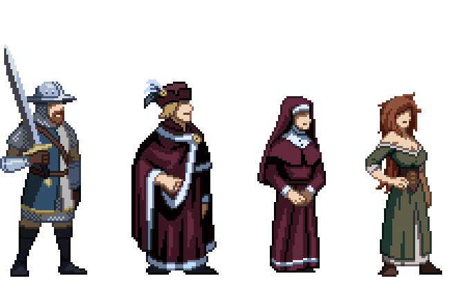 We've also got a trio of champions this time around. Above you can see the distinct regional variants for the main three factions of the civil war: Castor, Valloria, and Eldergrove. Something you'll want to remember is the importance of faction relationships. During the events of Necrofugitive, warring factions will be hostile to one another. This means your disguise will provoke different reactions depending on the faction you present it to.
