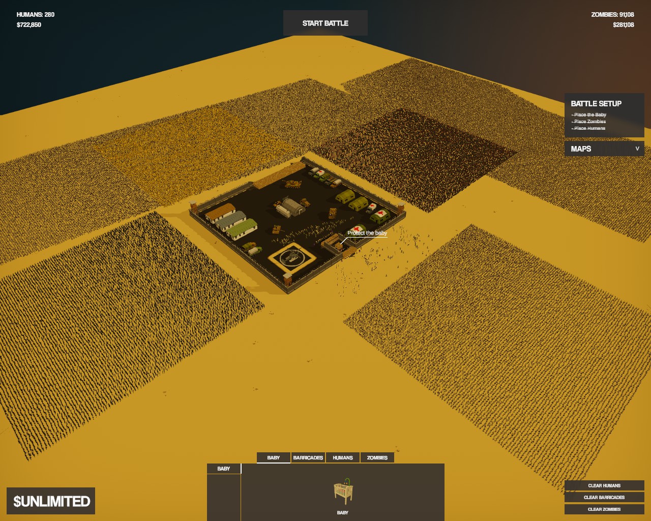 Face massive zombie swarms in this funny post-apocalyptic tactical sandbox! Do you know what it's like to be surrounded by 100,000 zombies? Well, you're about to find out!