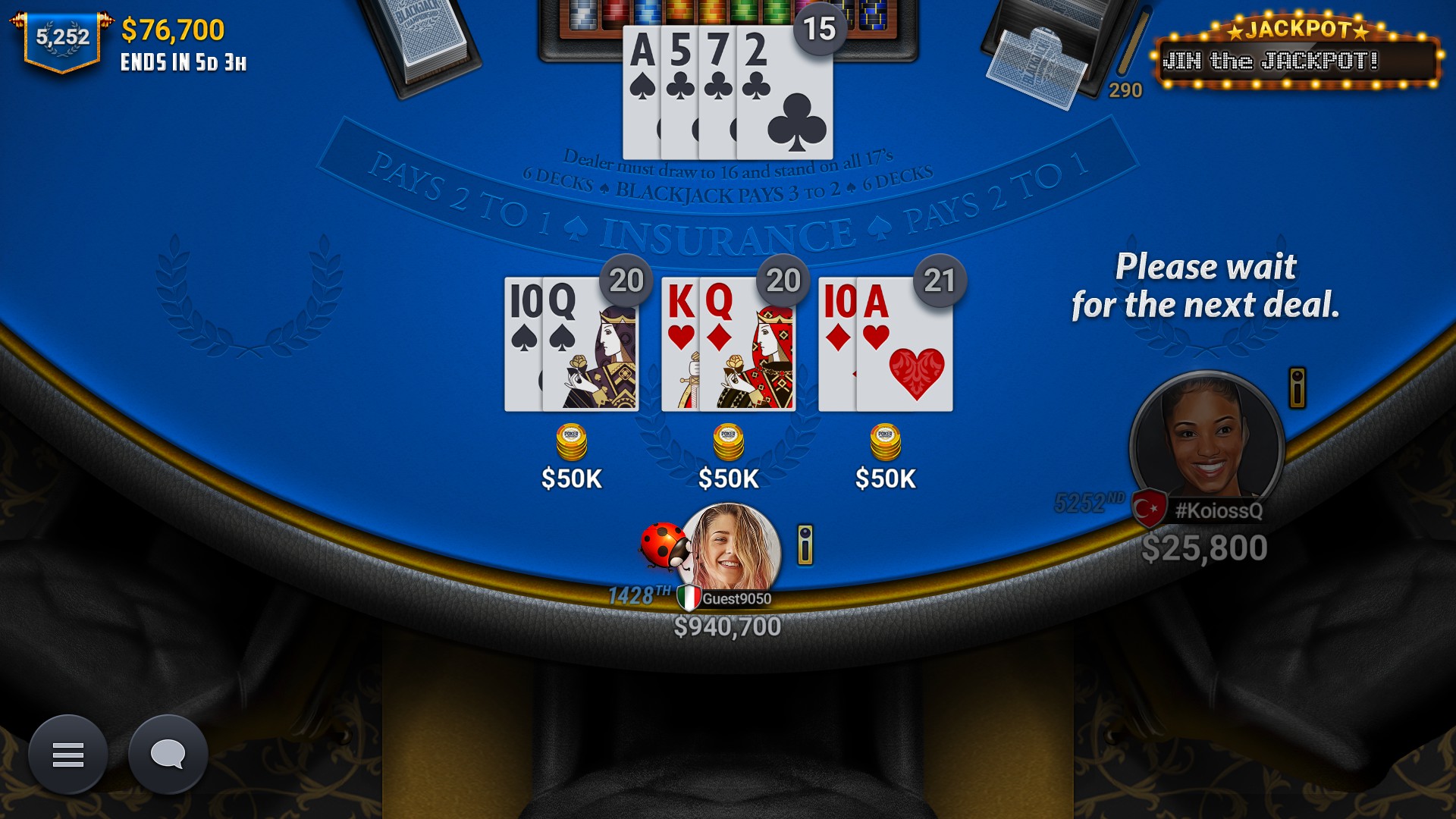 Play the most authentic BLACKJACK GAME with players all over the world! Spend some lovely and relaxing time with our top-of-the-line game provided with many special features for you to feel real casino atmosphere.