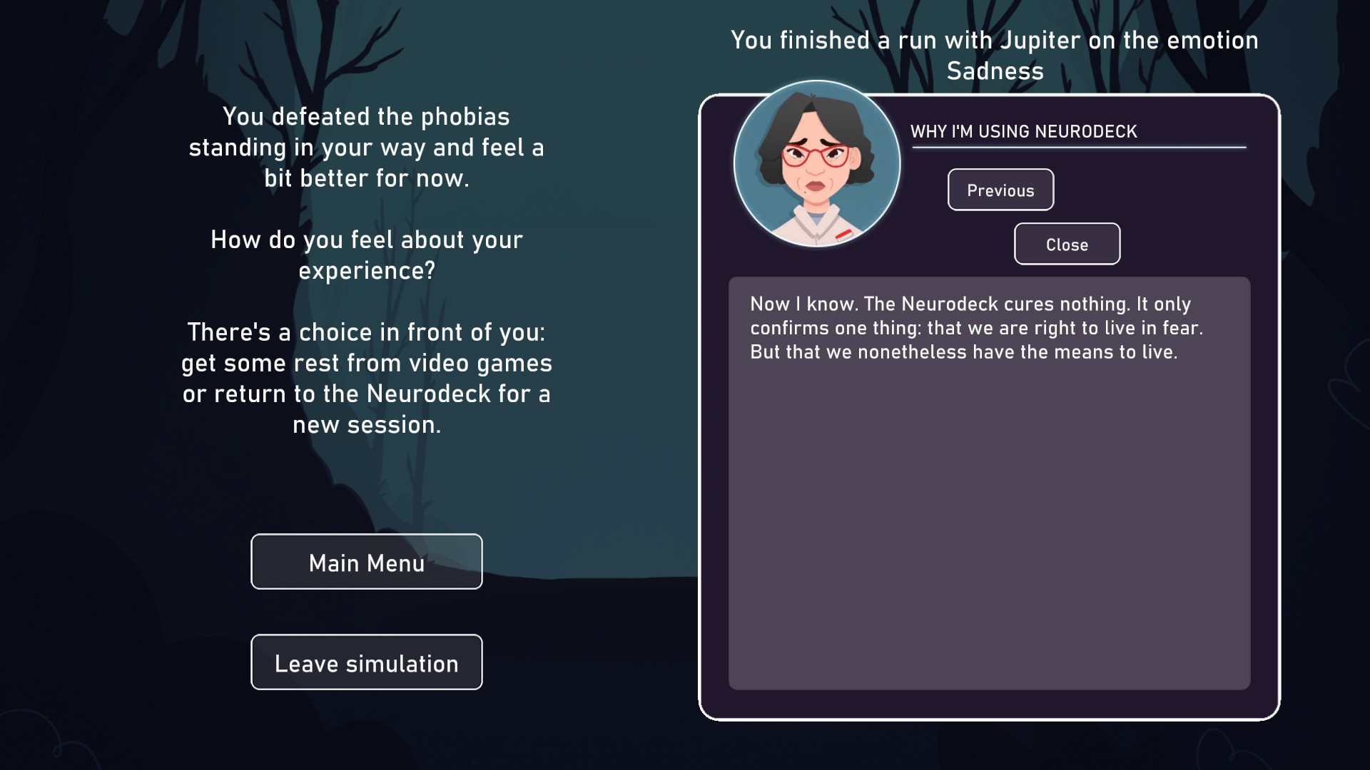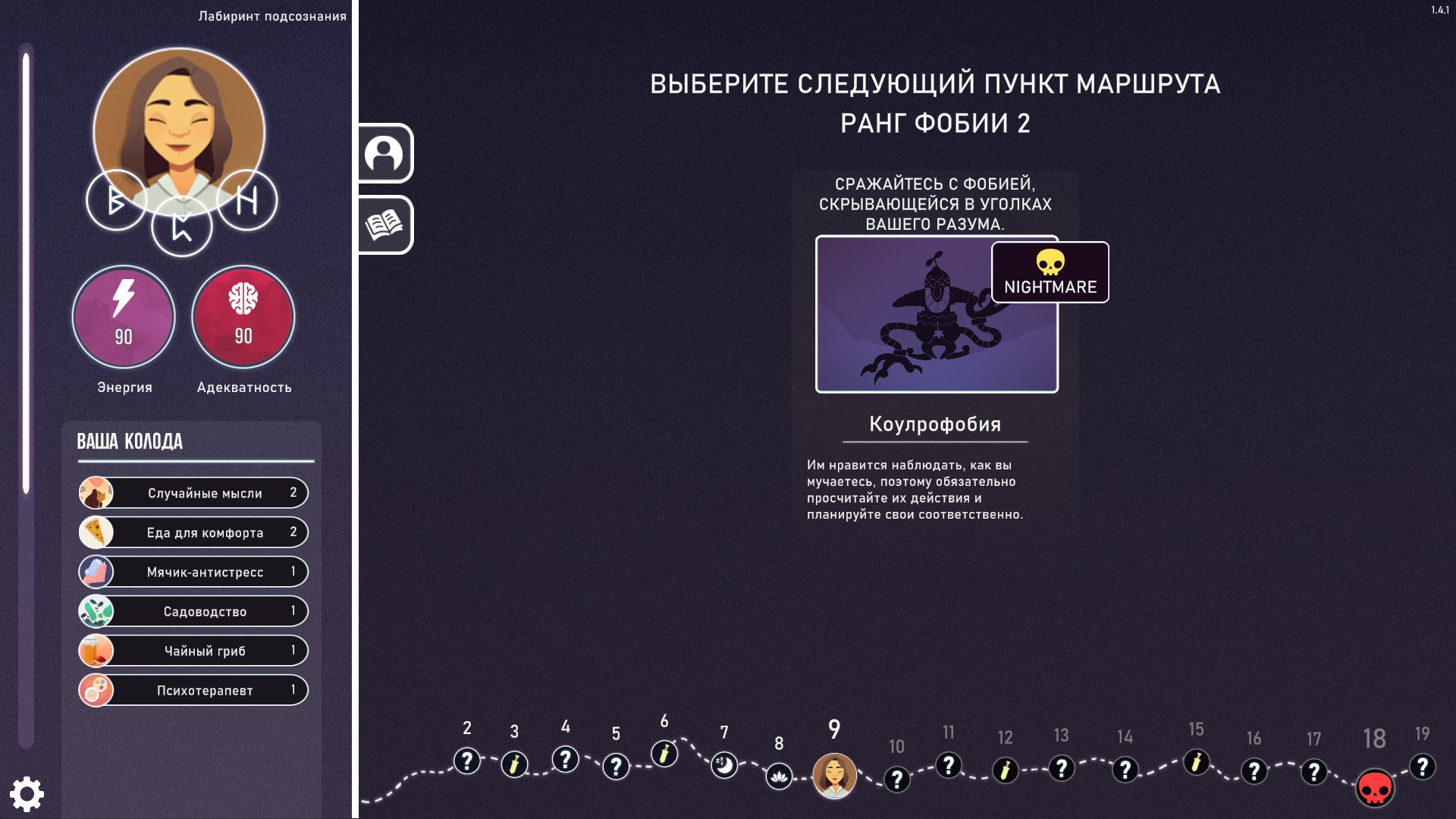 Neurodeck is a psychological deckbuilding card game to challenge your fears. Build your deck & capacities by answering personality tests, visiting rooms or meditating. Face your phobia and defeat them through the power of life-inspired cards.