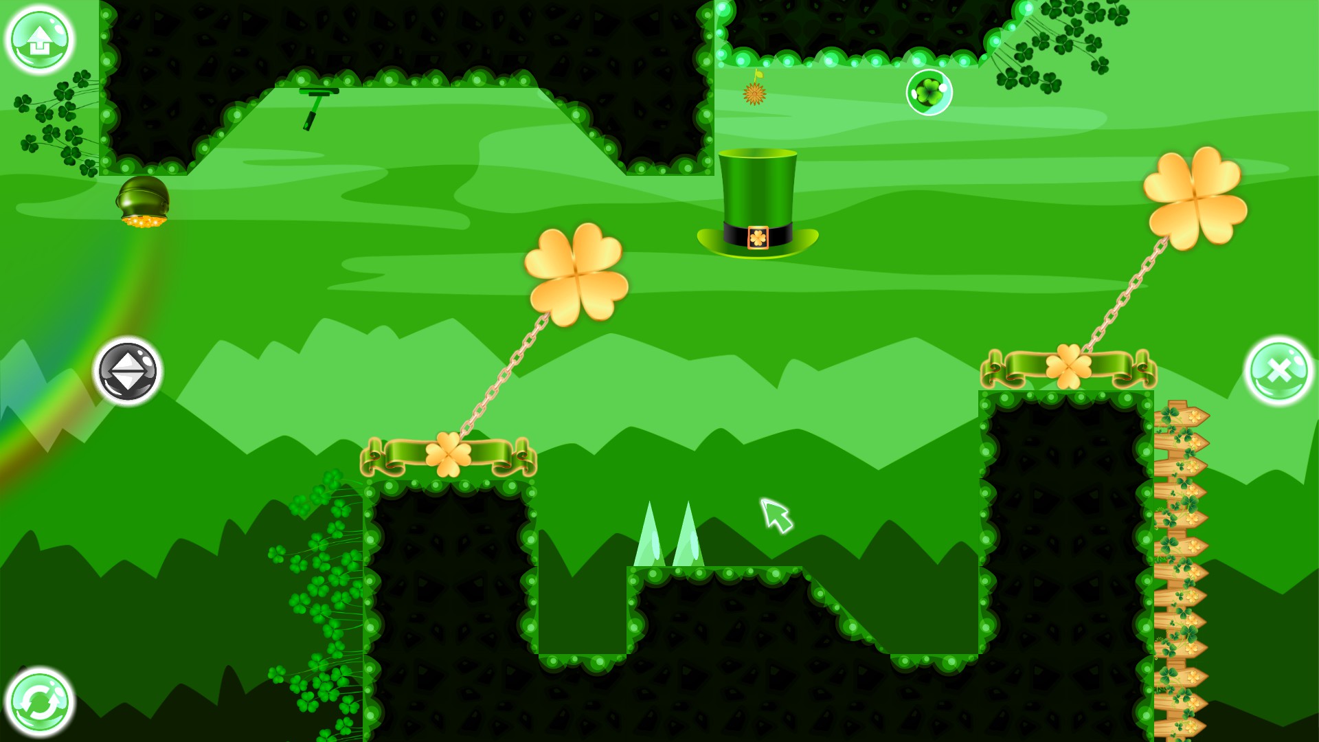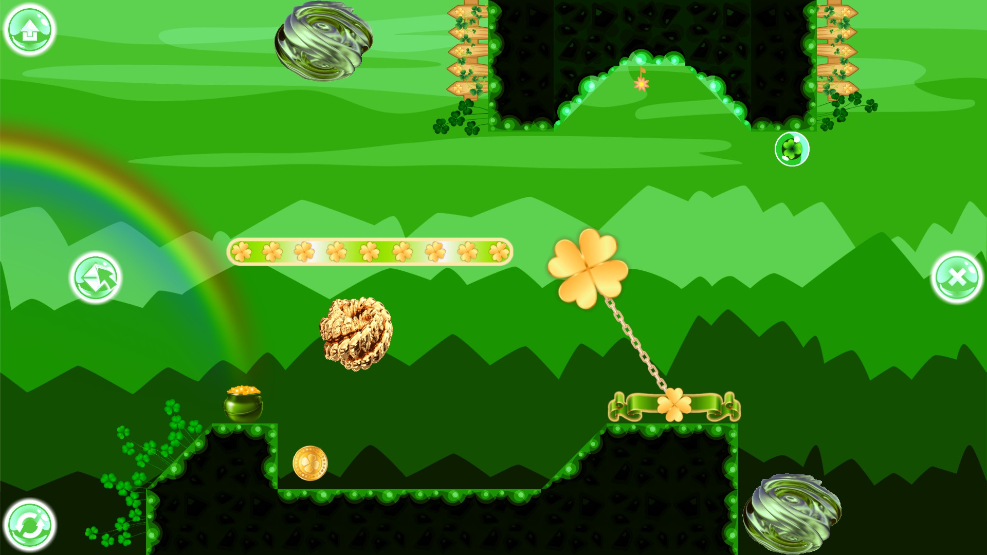 GraFi St.Patrick - casual, colorful, minimalist, physical puzzle with traps, treadmills, portals, clovers, rainbows and changing gravity.