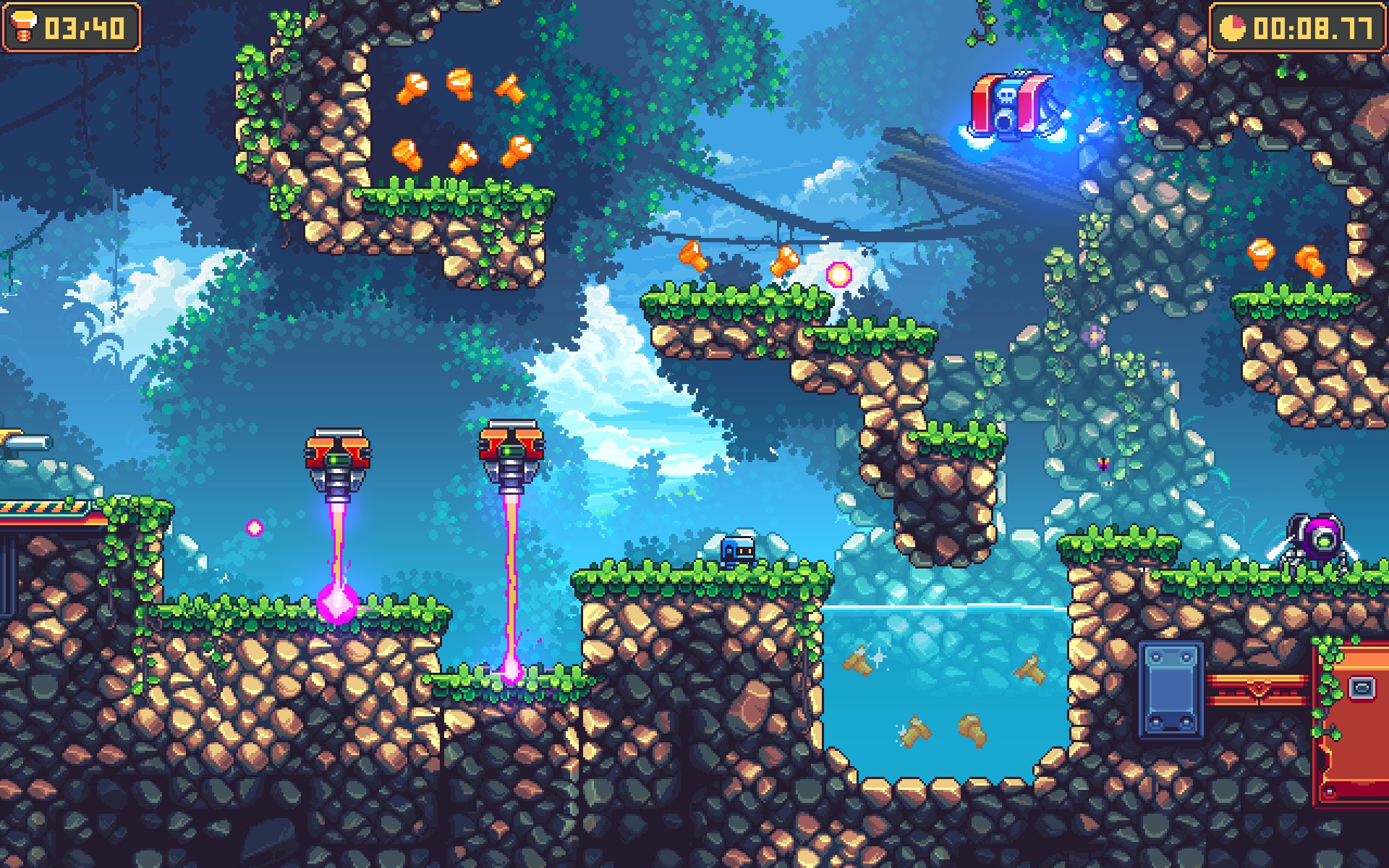 Become a tiny ZX8000 robot and begin your journey through a beautiful, pixel-art world inspired by games iconic to the platformer genre. Follow a cute story, upgrade your skills, beat challenging levels, and compete with other players for the fastest speedrun!