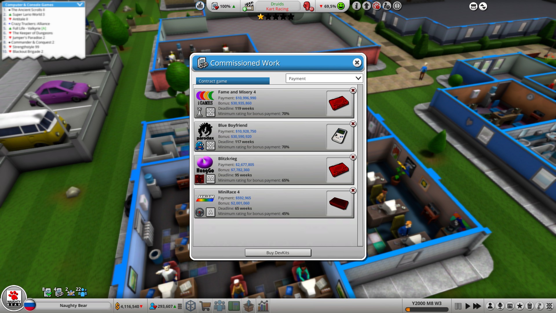 Start your own game development studio in 1976. Build your own offices, production facilities and server rooms. Develop the games of your dreams and produce the next next-gen console. Rise from a small garage company to a huge corporation.
