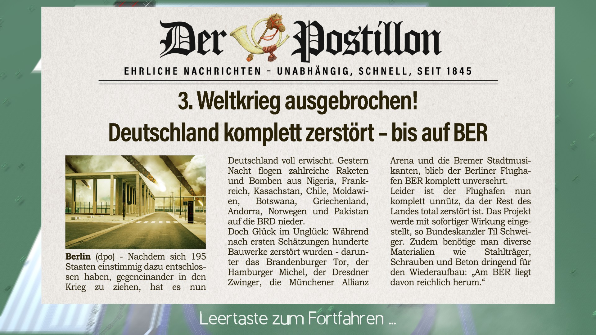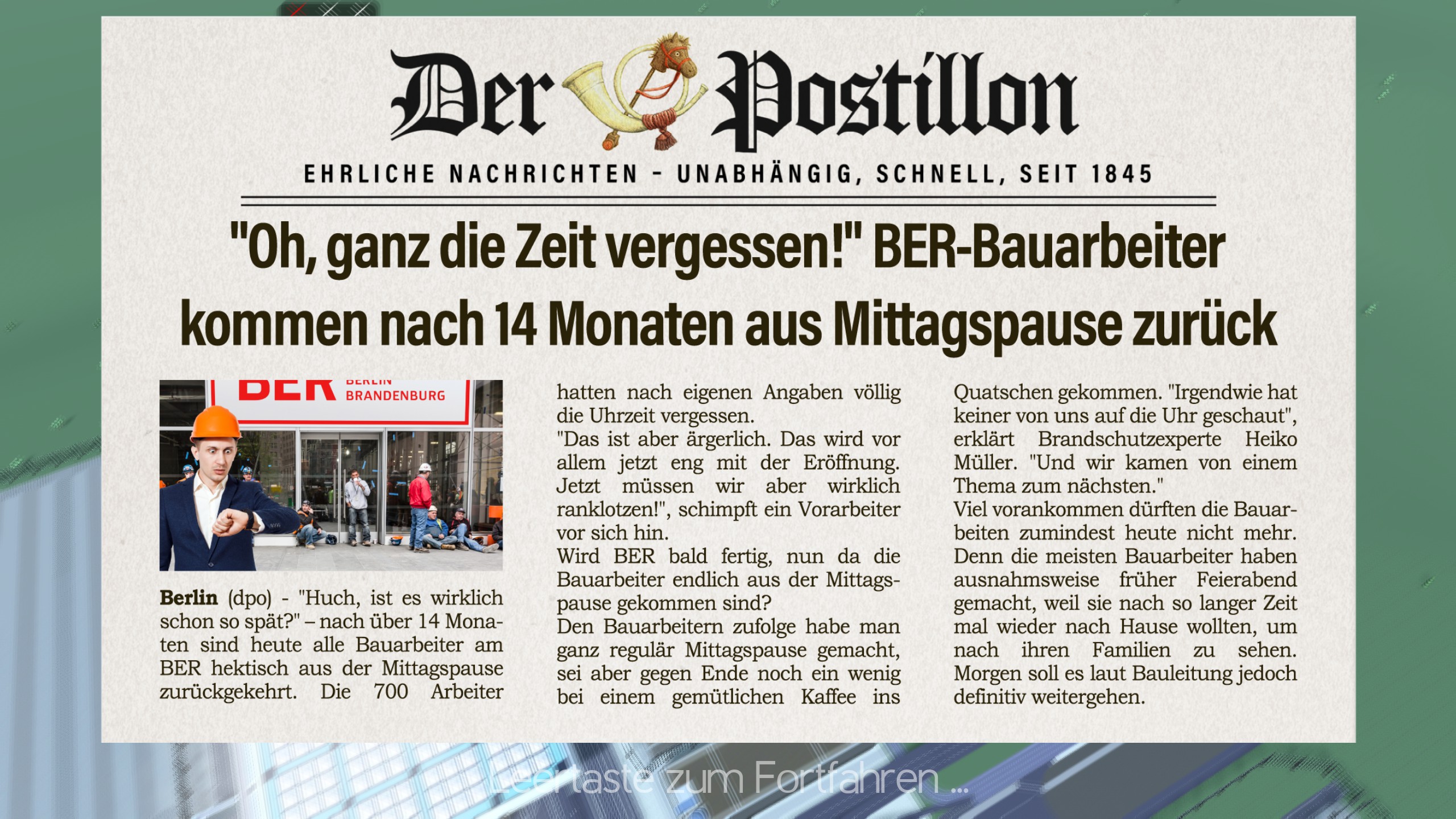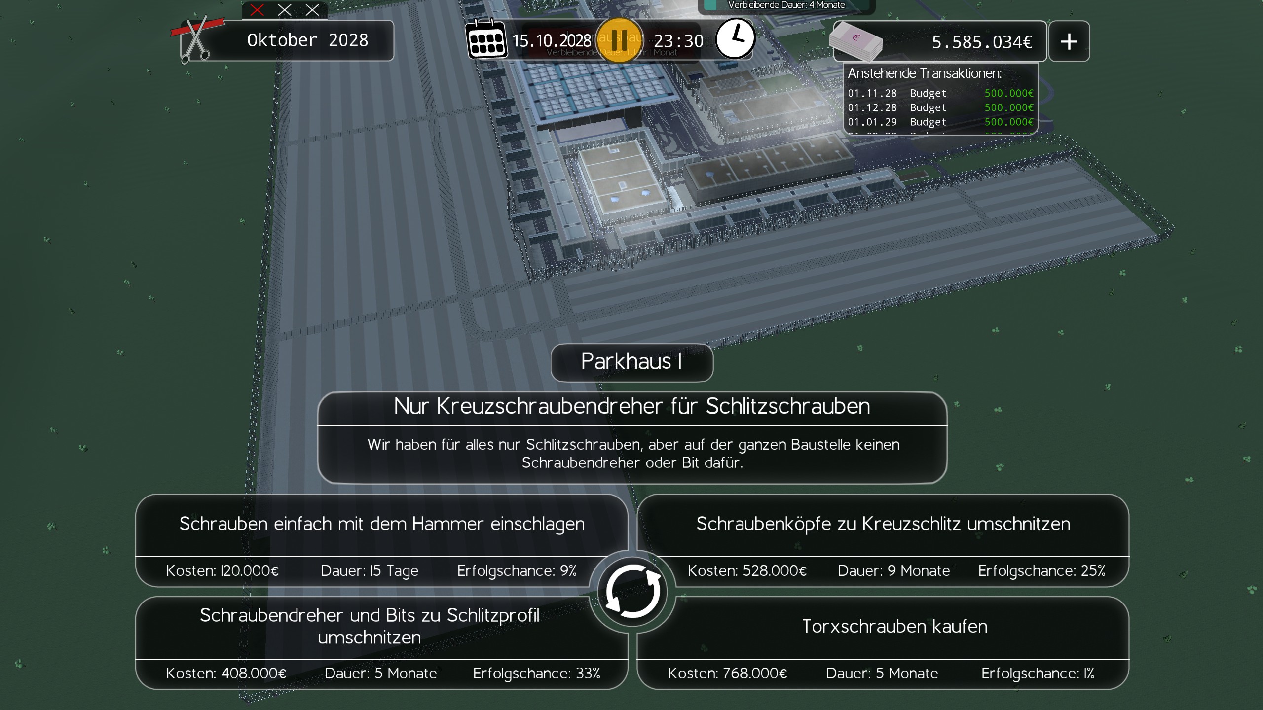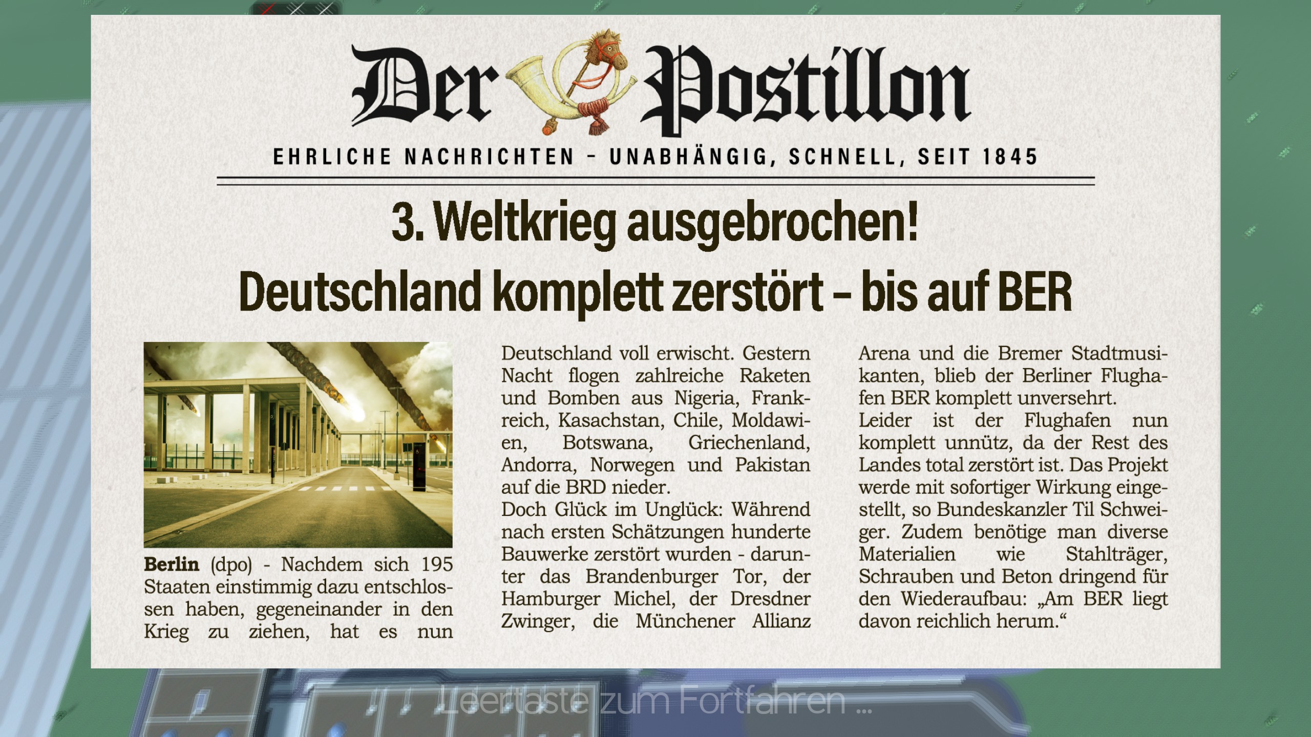 A simulation game making fun of Germans needing 16 years to build an airport. Are you able to do better?
