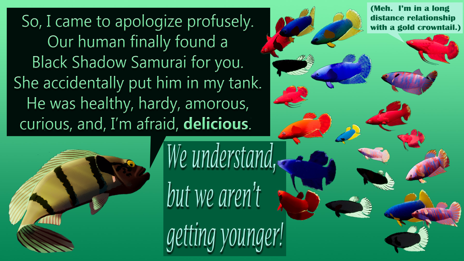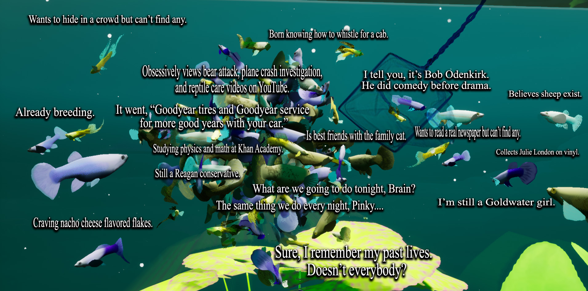 Fish Game is a detailed and highly “sofishticated” freshwater aquarium simulator, lovingly crafted *by* enthusiasts *for* enthusiasts! Featuring fish with personalities and dynamic relationships, water quality modeling, and so much more! Made with support from our friends at Smarter Every Day!