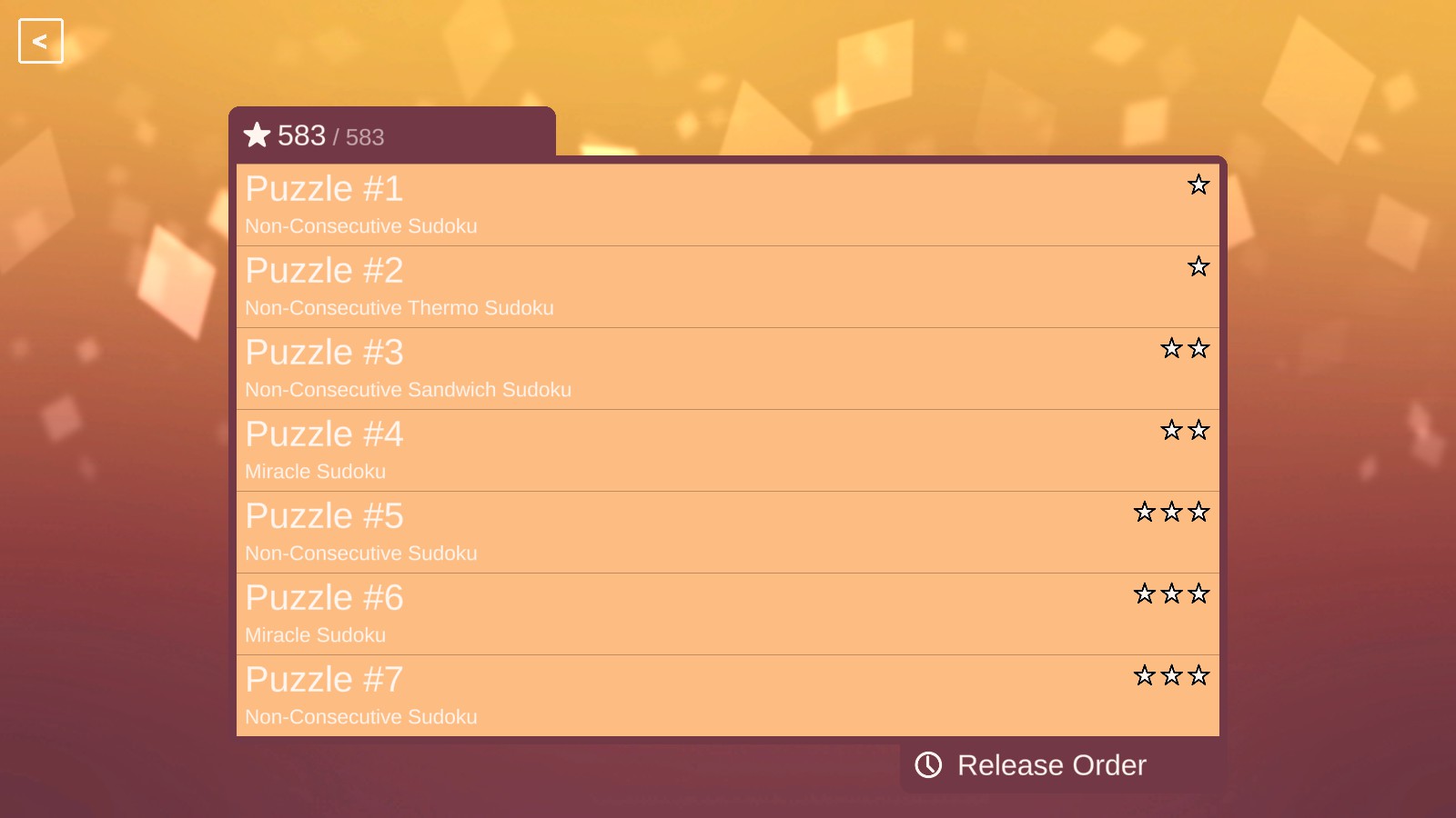 Miracle Sudoku features beautiful puzzles that at first glance look impossible to solve!! Indeed, some of our Miracle puzzles have as few as two givens digits (!) but you will find them all to be solvable with a bit of clever logic!