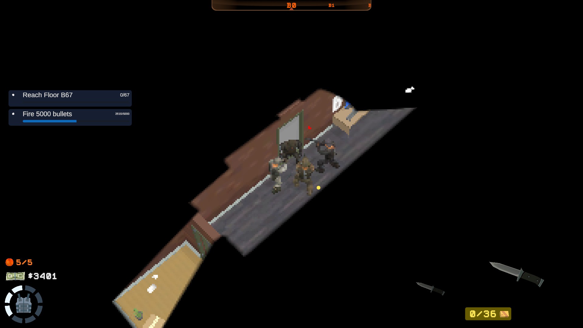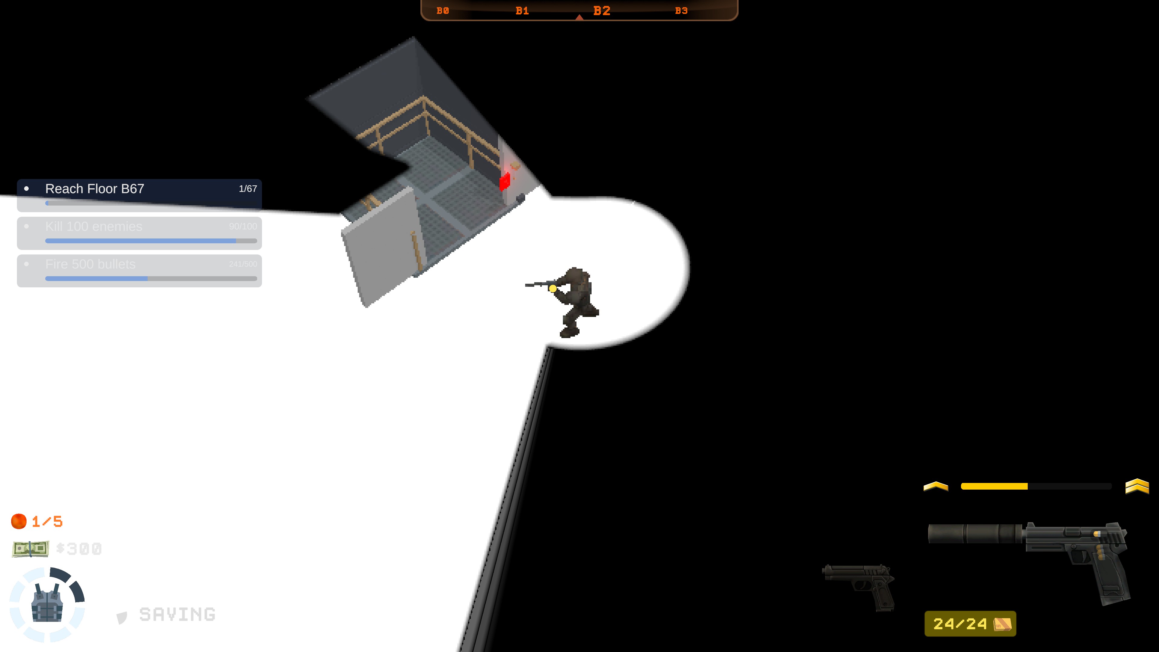 B67 is a top-down roguelite shooter that finds the player struggling to descend through 67 sub-levels of ever changing chaos. Manage your ammunition as much as your fears as you descend further into the unknown.
