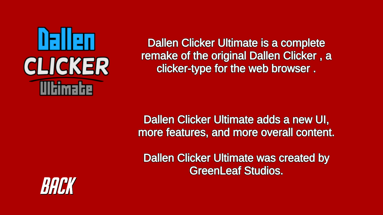 Dallen Clicker Ultimate is an enhanced remake of Dallen Clicker, an incremental game.