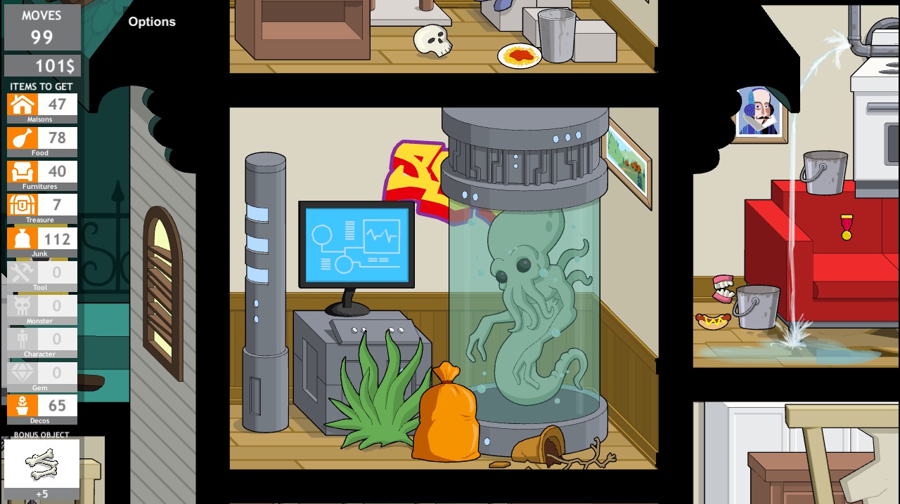 Tidy up, declutter and repair a Victorian mansion. The goal is to put each object in its place. A variation of a classic hidden object game.