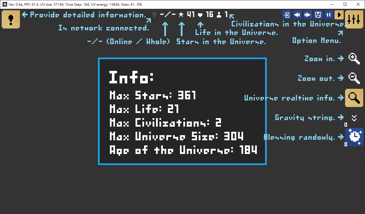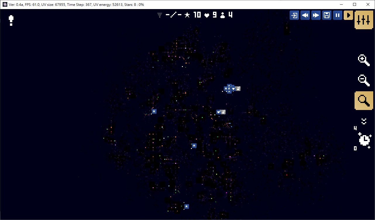 It takes a long time to develop the universe. Not only a game, but also science research. Through the model constructed by theoretical physics, you can observe how the 2D universe rise and decline. Higher level civilizations like 4 or 5 is not easy to comply. There are always wars between one to another.