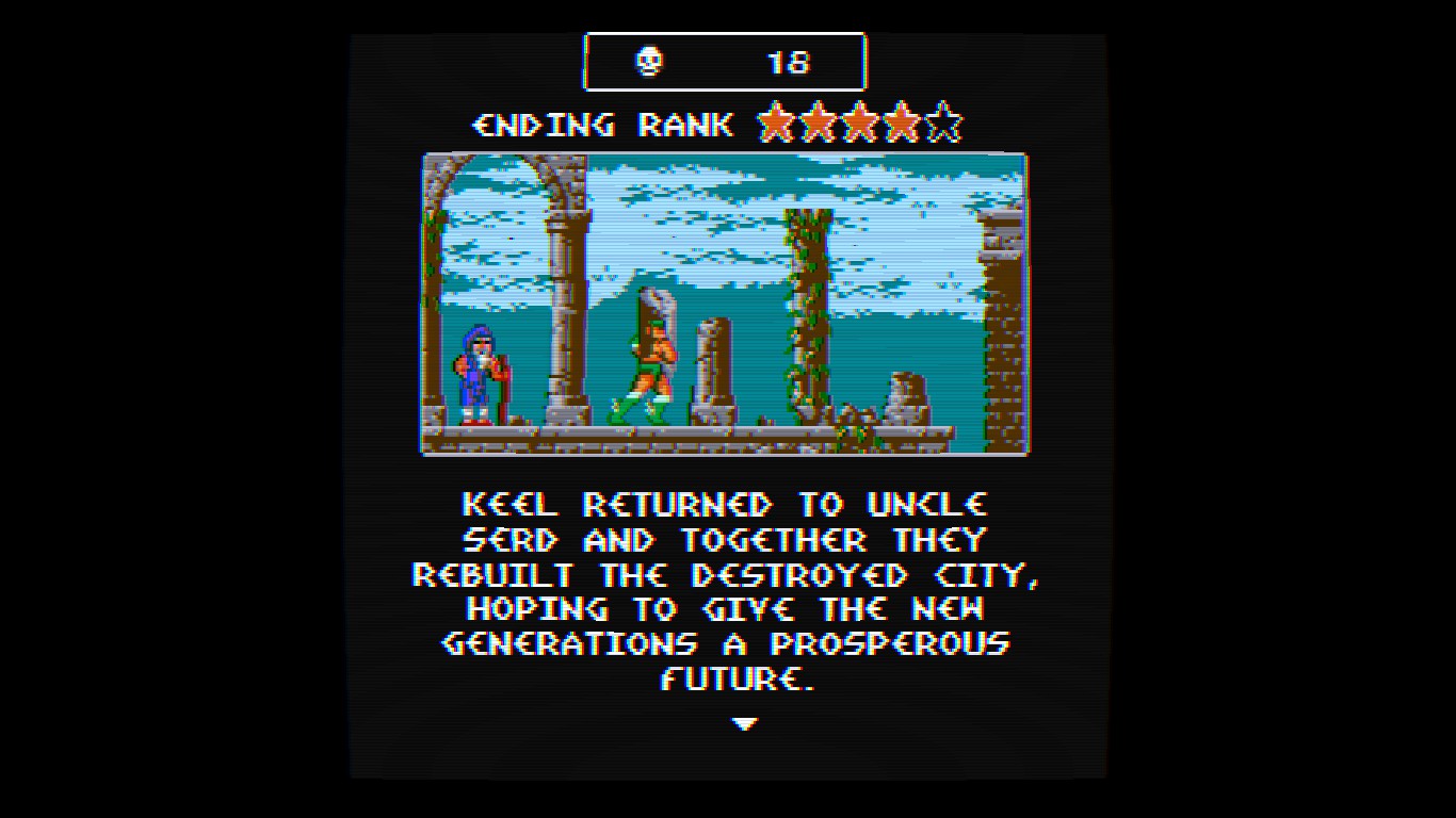 A game that puts together Rastan's action with adventure elements inspired by Faxanadu. An old school tribute for every lover of 8-bit classics!