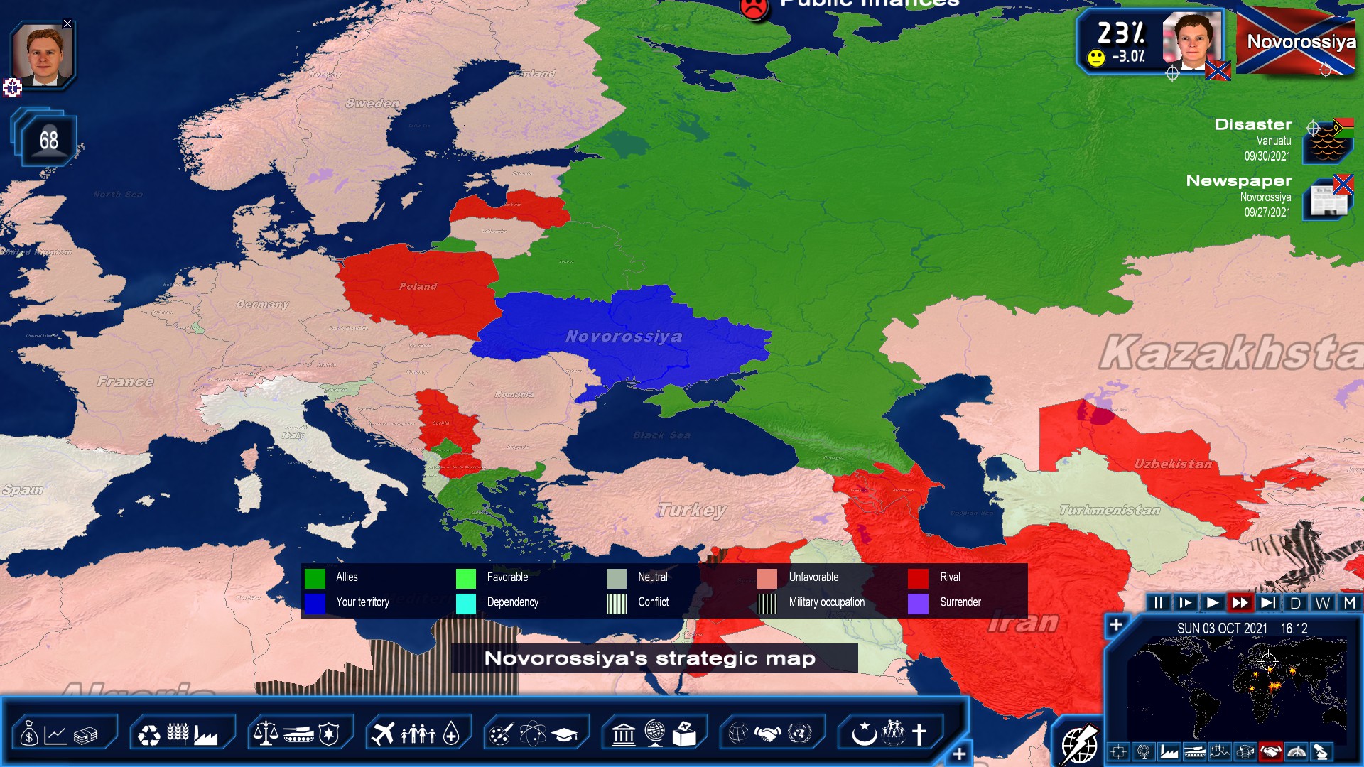 A new expansion of the ultra-realistic simulator of today's world where you play as the head of state or as the opposition! New Features for 2021: administration of the EU, Covid vaccinations, Biden's Challenge, political coalitions, diplomatic negotiations, worldwide tax and free-trade agreements.