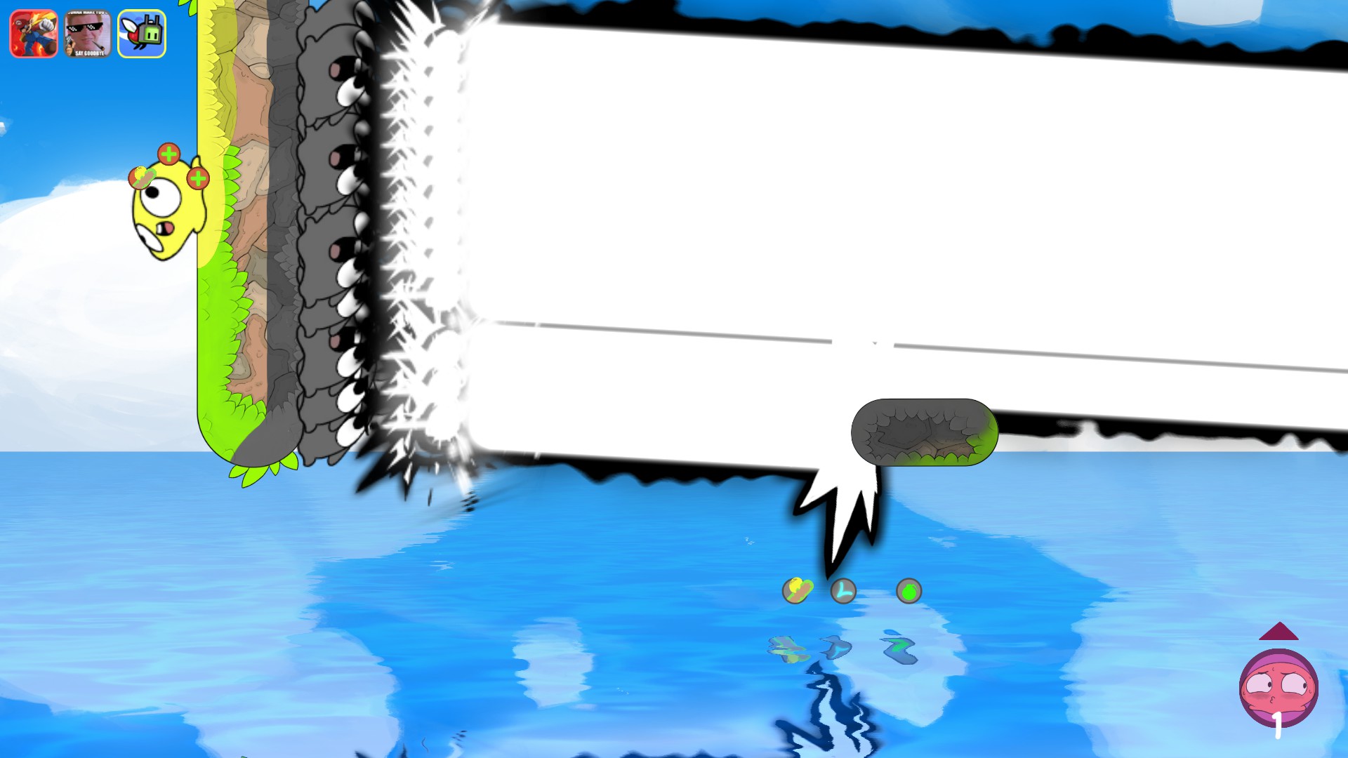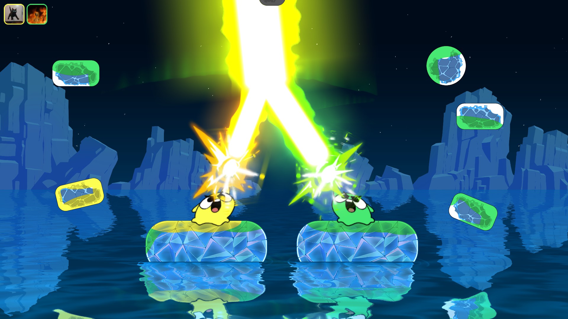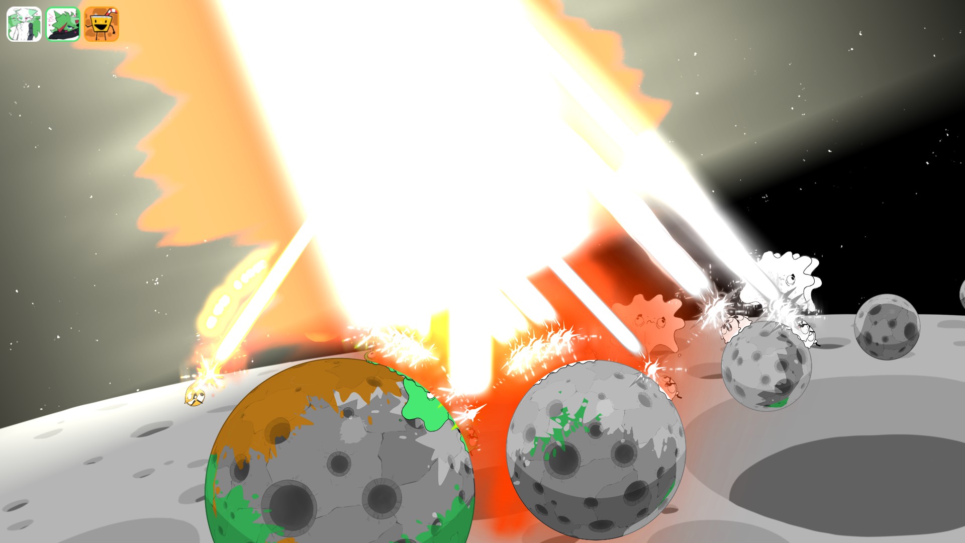 A couch/online game where you battle your friends with unique and wild abilities. There are many choices such as a shrink ray, creating black holes, stopping time and attaching a rocket engine to the stage to send it flying. Choose a combination that synergizes well to win the round!