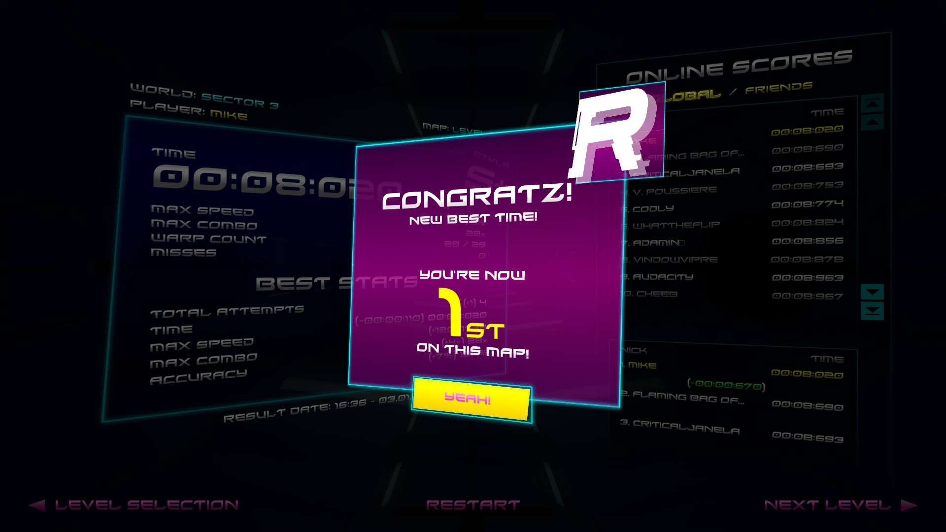 RAYZE is an AIM RACER. Hit a target to accelerate. Miss and you slow down. Hit a wall and lose. Find the fastest route. Get to the finish line. Simple? Yes. Easy? Hell no. Ready? 3... 2... 1... Let's RAYZE!