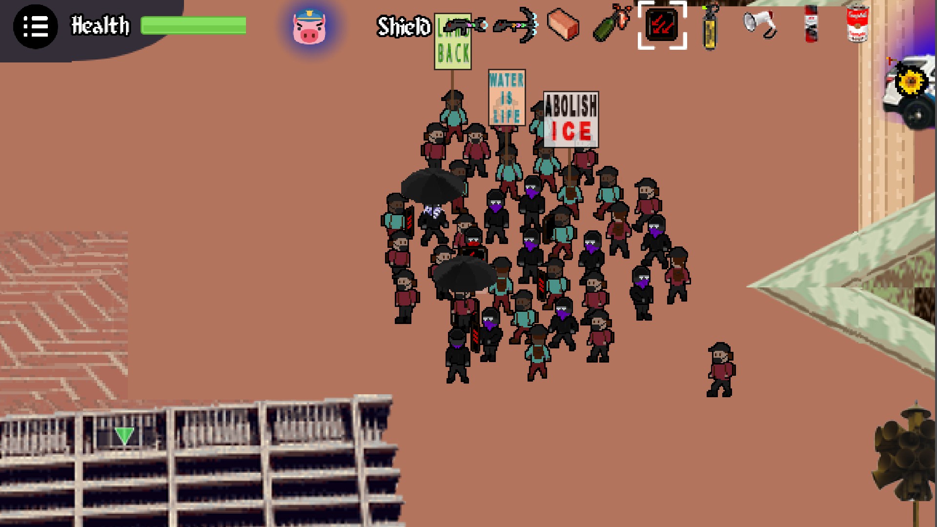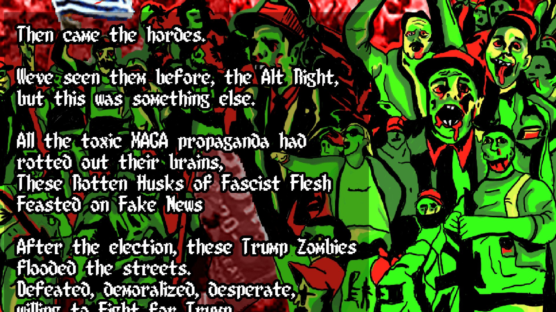 Anti-fascist gamers fight the Trump Zombie plague in this spree of rioting and looting!