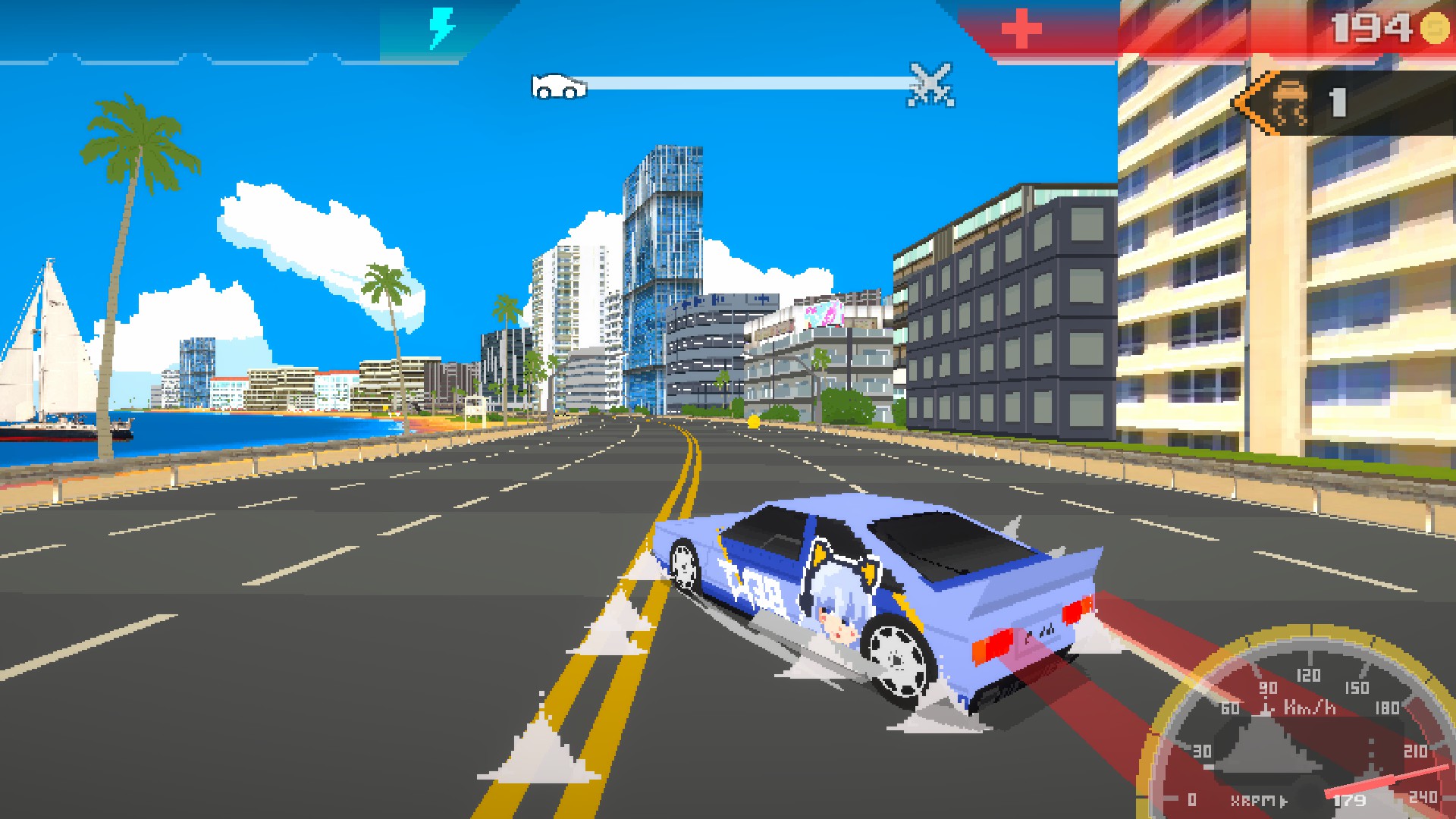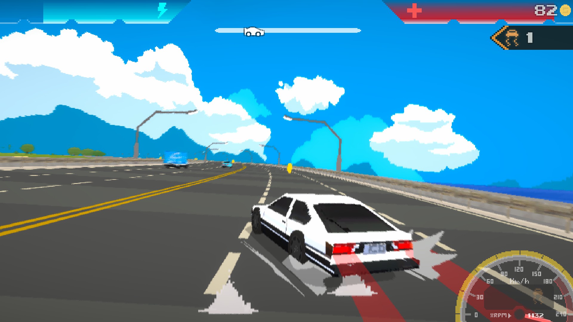 A blistering high speed retro racing game with low poly 3d pixelart.