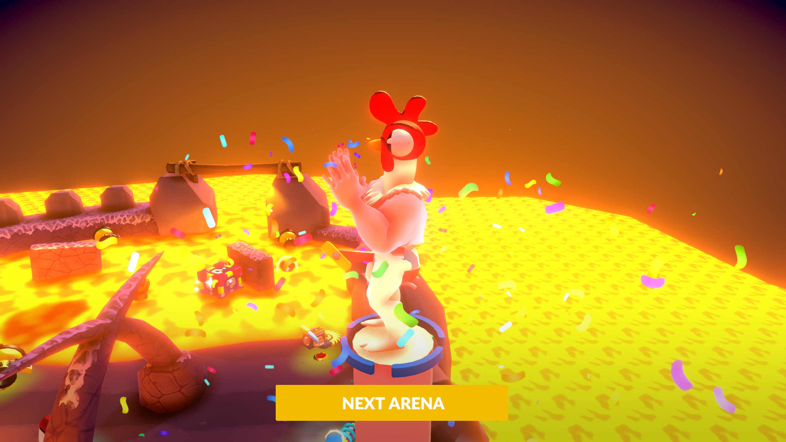 Chickenoidz Super Party - multiplayer top-down arena shooter for up to 4 players. You can play local or altogether online via Remote Play. Steal the show using an array of incredible weapons, special equipment and even mutations. Smash your opponents to smithereens, rip everything around you.
