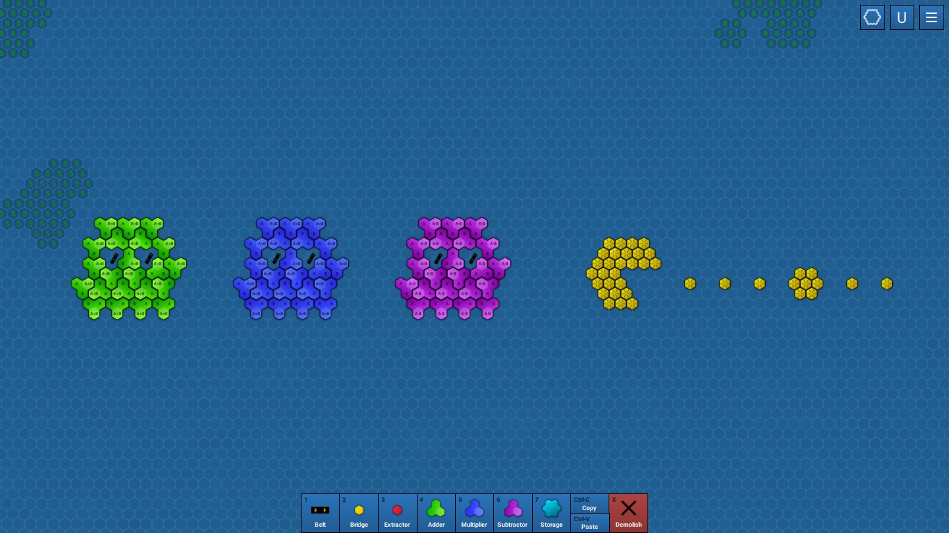 Beltex is a casual factory game played on a hex map. Extract numbers. Combine them using mathematical operations. Deliver them using belts across a huge map. Unlock new buildings and upgrades.