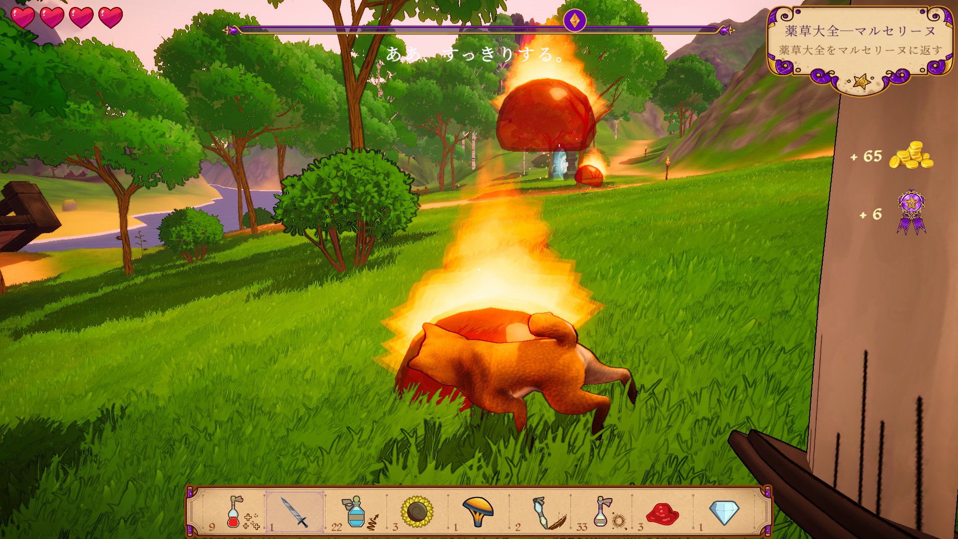 First-person Alchemist Simulator with RPG elements. Explore the world, gather ingredients, and sell or use potions you craft to help others and fend off enemies. Adopt pets to help you with your alchemy knowledge (and to pet them). Decorate your home however you like and brew your destiny!