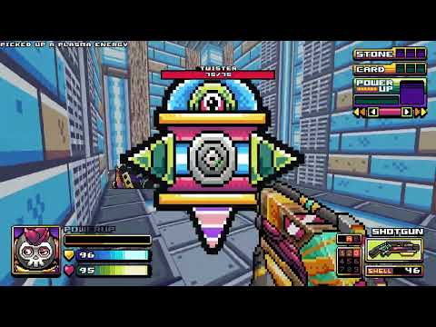 A 2D Pixel Art Shooter-inspired sci-fi FPS runs on GZDoom. You play as 'Petaka', an angry amnesiac that's on a journey to revive his memory by exploring multiple universes through warp portals. His journey won't be easy because he'll encounter one-eyed aliens and annoying drones that'll attack him.