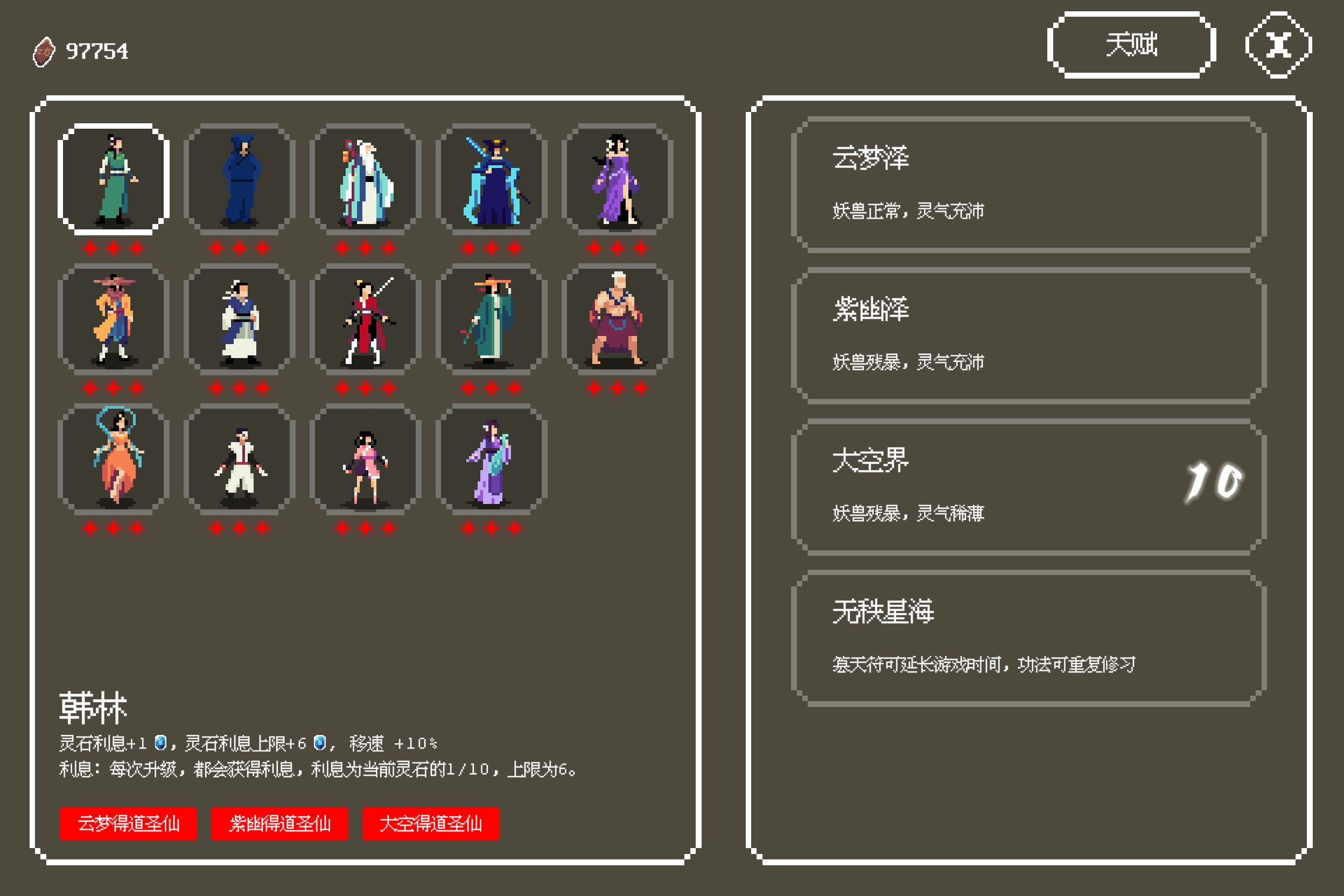 《Infinity Tao》is a Rogue Lite game set in the Ancient Chinese Immortal Cultivation setting. Raise your realm, build powerful Magic Treasures combinations and Synergies, kill thousands of monster and win the 30 minute game.