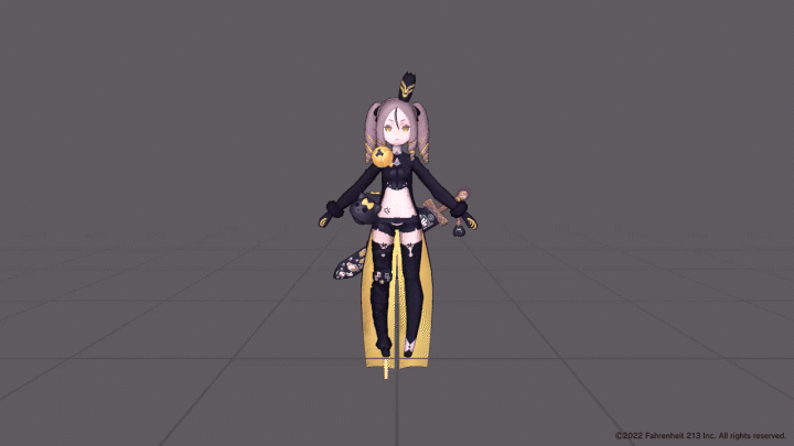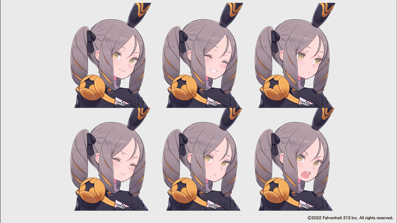 In addition to her outfit, we also design a wide range of facial expressions to convey different emotions.