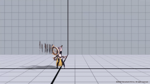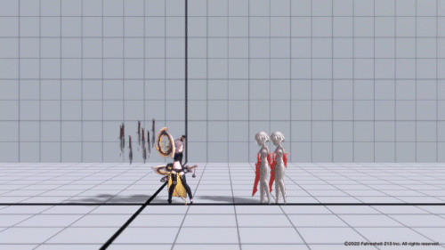 The weapons that follow Arche also change with each style. In the third style, the attacks are designed to cover a wide area across both sides of the screen.