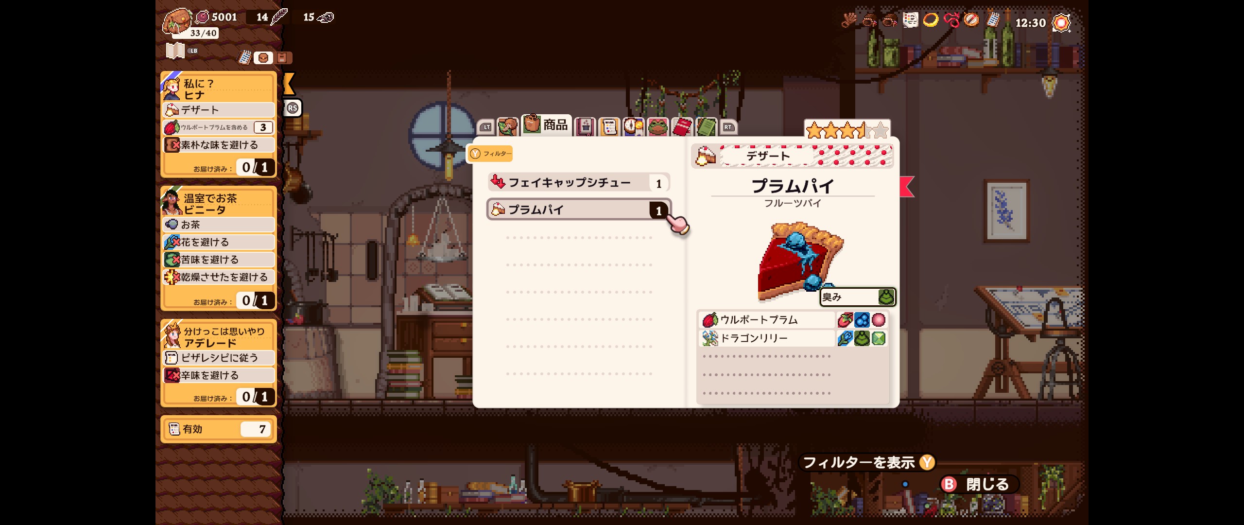 A magical pixel art platformer. Explore an unfamiliar town and deliver tasty treats to the townsfolk. Cook magical delicacies from your bought and gathered ingredients. Learn new ways to traverse, discover secrets, and figure out the intricacies of your orders.