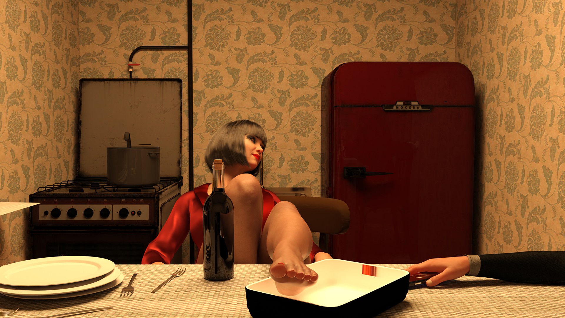 An animated adult visual novel, set up in a post-soviet environment. Yes, you live with the landlady.