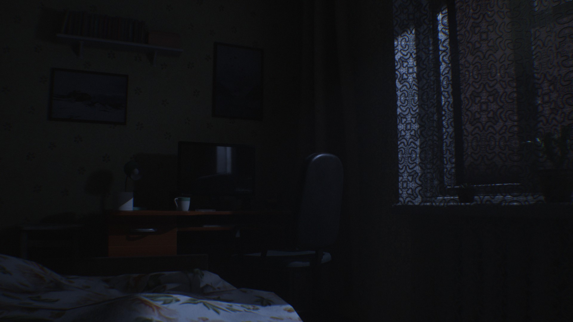 A first-person horror game dealing with sleep paralysis. You are lying in bed, unable to move, experiencing creepy phenomena and having to survive until morning from ghosts.