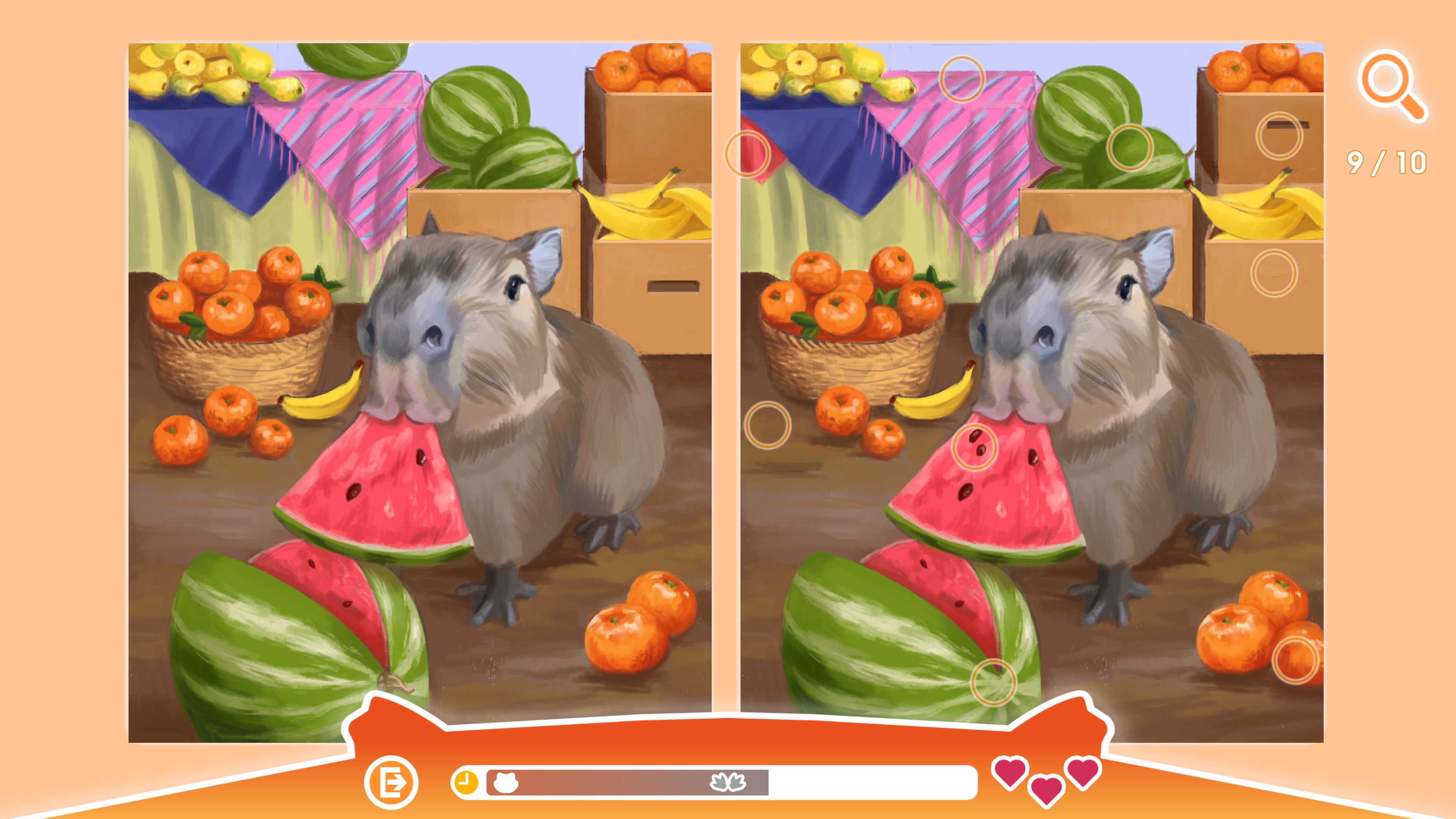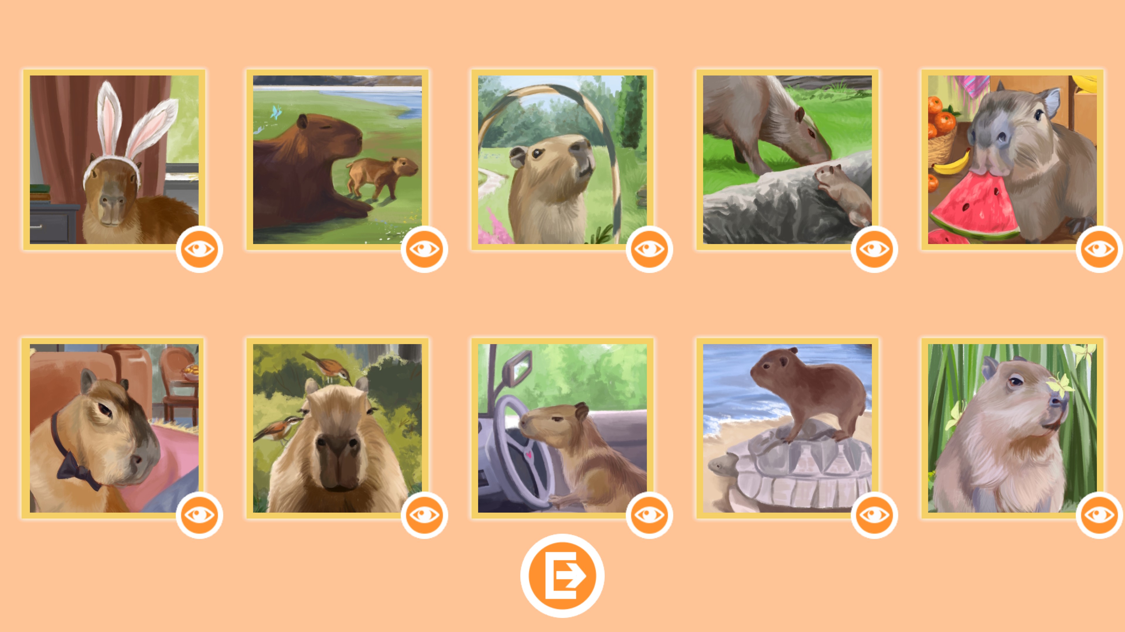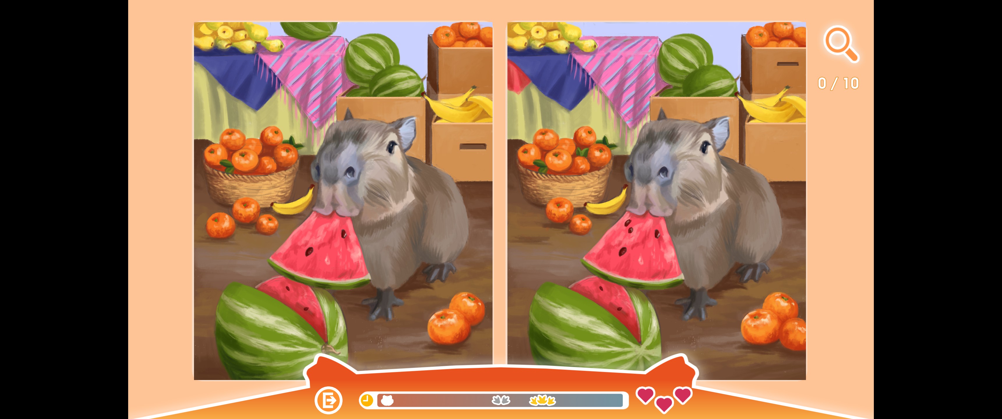 Spend your time with profit and pleasure! Play the puzzle game with the cutest and friendliest animal in the entire world! Find difference on pictures with capybaras!
