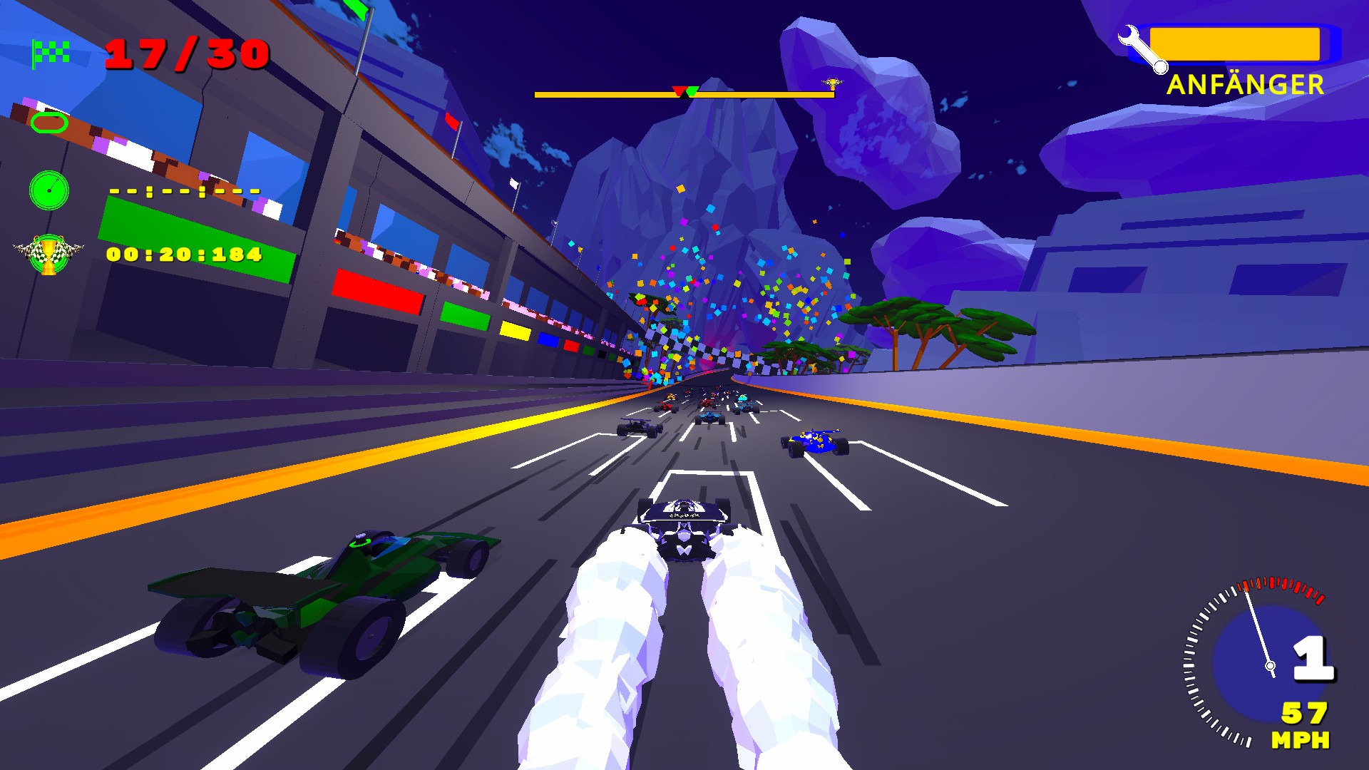 It's all about speed, it’s all about the competition. Choose a car that suites you and race highly competitive AI at break neck speeds over a vast variety of locations. Unlock 48 tracks and 20 cars in Progress Mode. Check your ranking with Online Leaderboards.