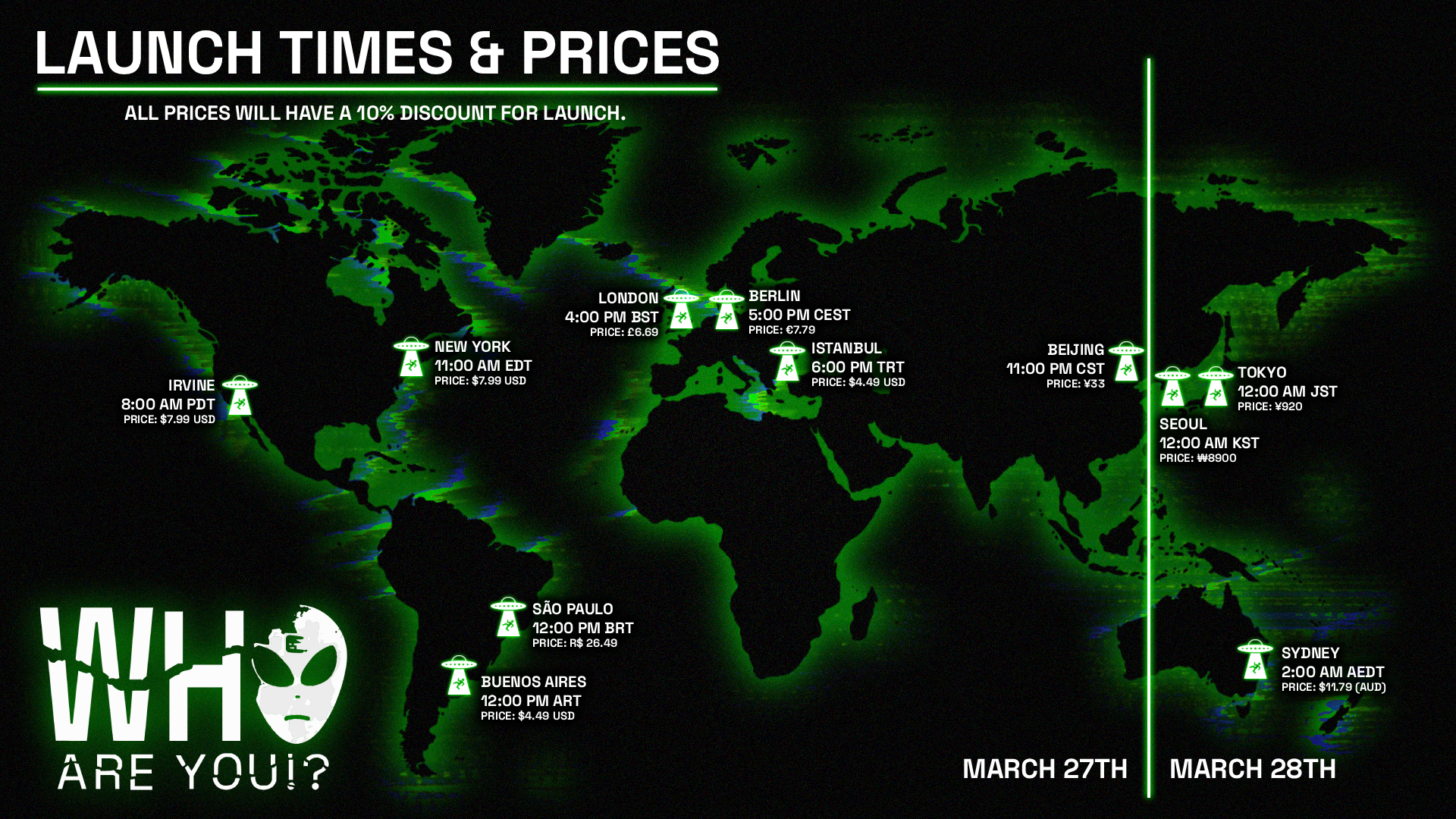 Who Are You!? is a sci-fi psychological horror experience based on real UFO research. The story centers on Ray Roswell and his internal fight to understand the disappearance of his wife, which may involve an alien abduction.