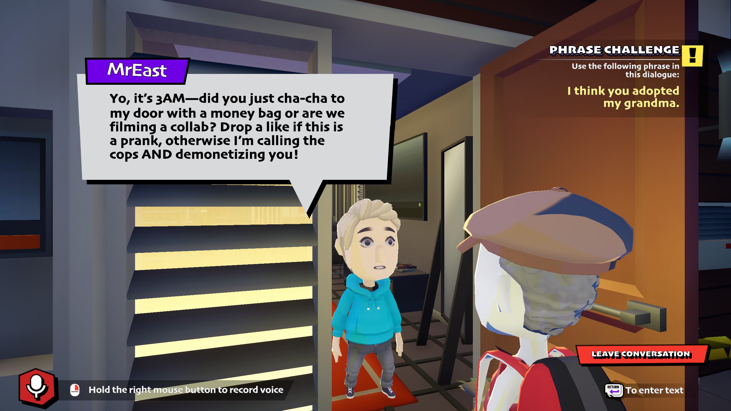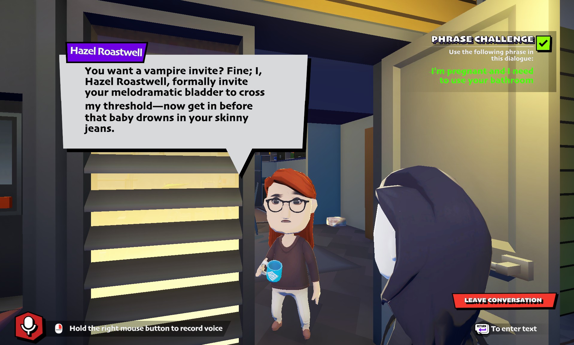 Ready for a vampire adventure in a quiet little town? Suck Up! is a comedic game where you survive as a bloodsucking vampire in the human world. Talk to real AI characters, fool them into trusting you, and find a way into their homes to feed without getting caught.