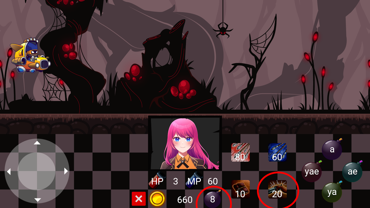 The maximum number of bombs we can load is 6 by default (Challenger difficulty). We can see the number of bombs under the MP. Each time we hit an enemy with a correct bomb, we get one more bomb. We can also use the [Reload] skill to max our bombs.