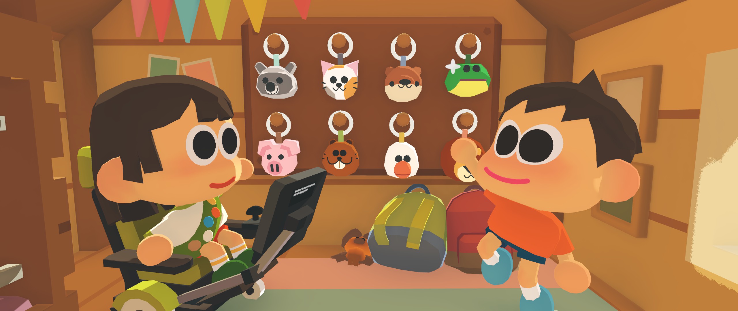 Find your community at summer camp, one friendship at a time. Take a beat, enjoy a breath of fresh air - all while playing at the beach, strolling in the woods, and dancing with friends. This short cozy game was created by two dads, celebrating their kids’ journeys to find their voices.