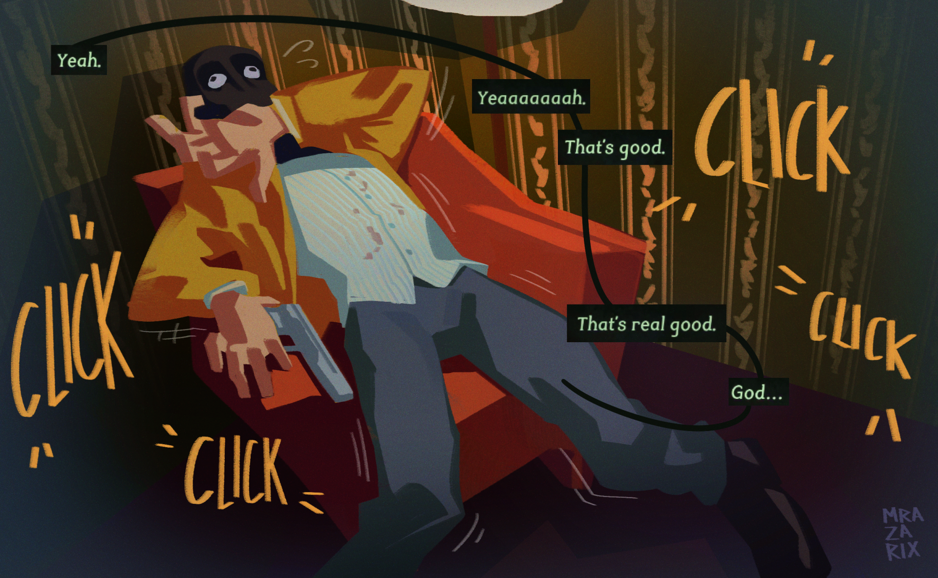 The man in the corner of your hotel room wants you to click something. He wants to watch you click it.