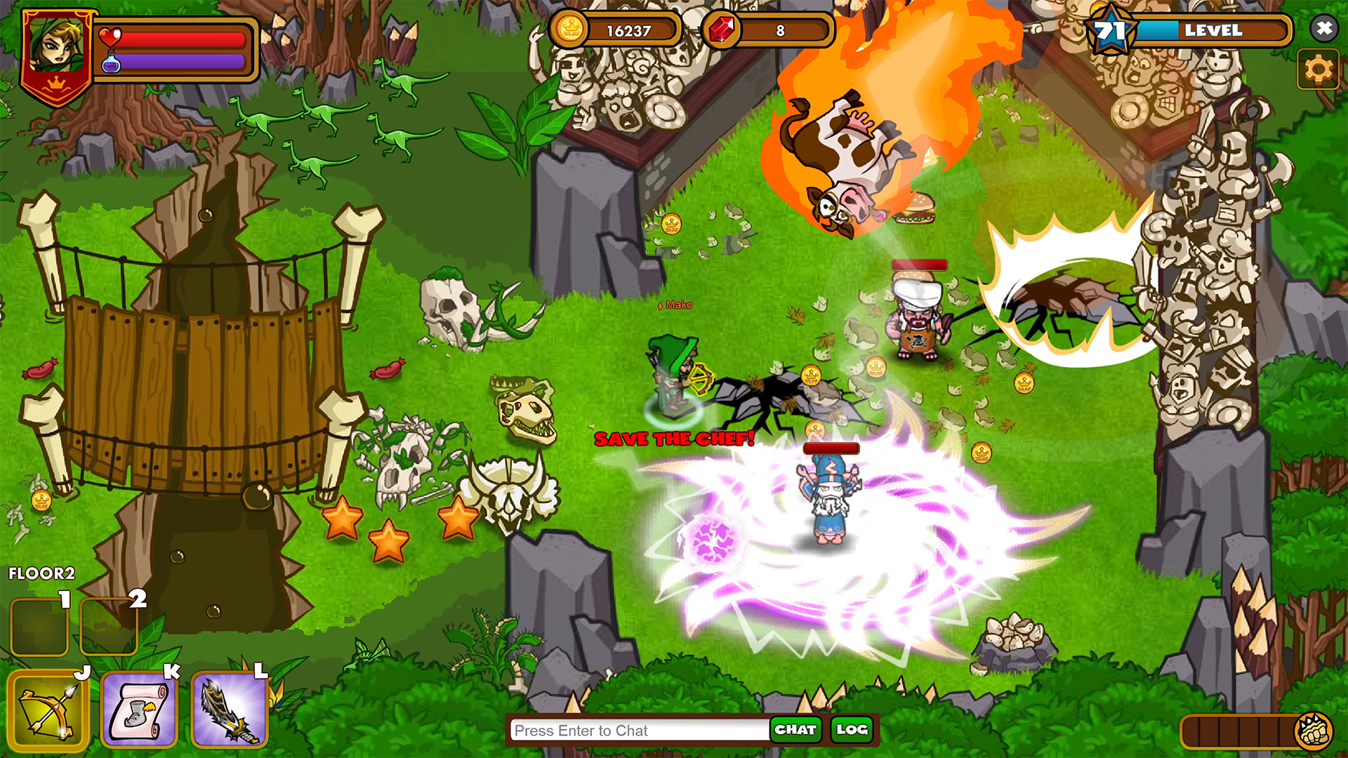 Battle your way to victory in this 1-4 player co-op hack-n-slash dungeon crawler. Play as a dynamic cast of heroes slicing their way through dungeons, earning weapons and loot. Rampage past a gauntlet of enemies and destruction to end the evil Lord Dinglepus' reign!