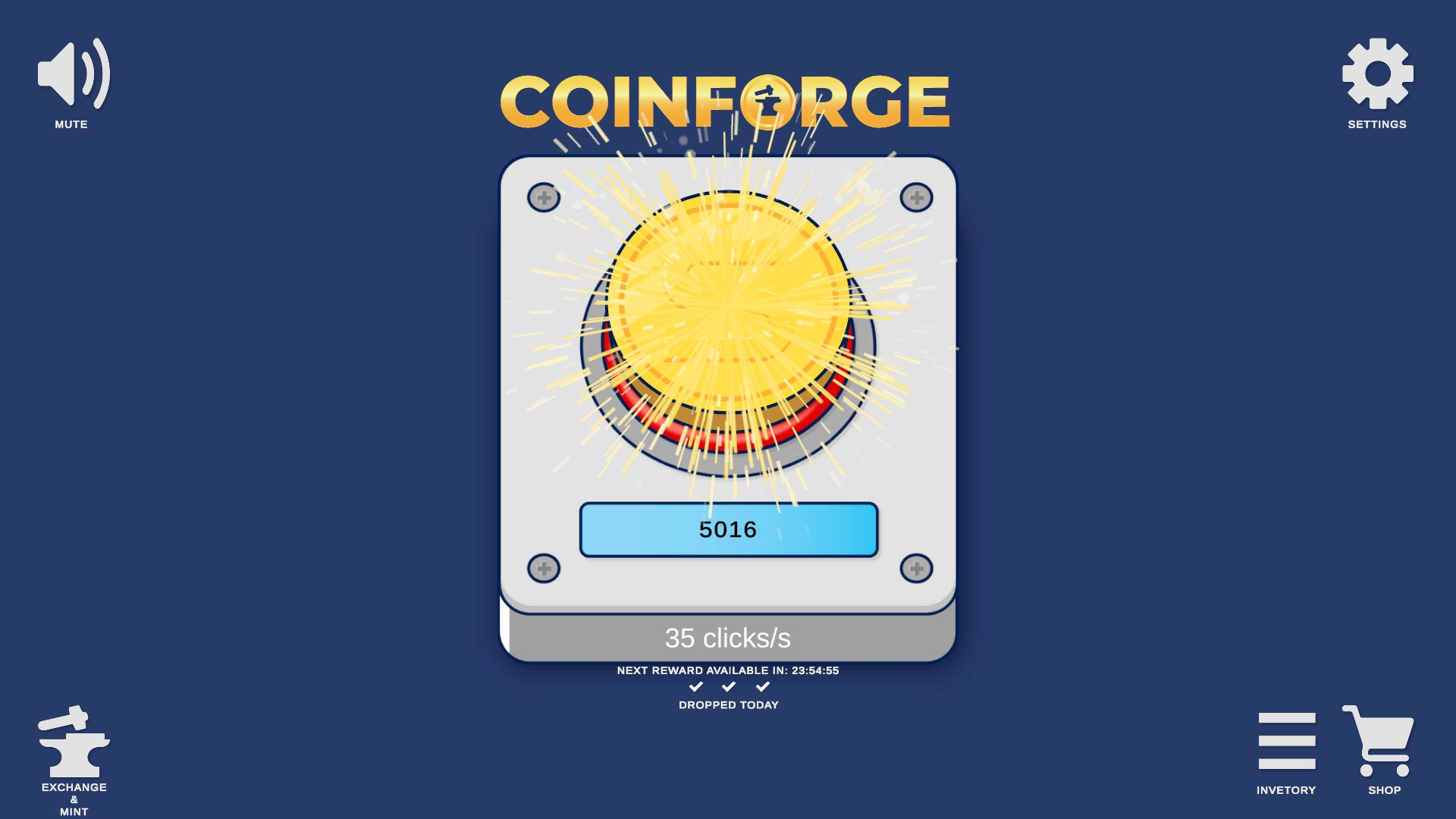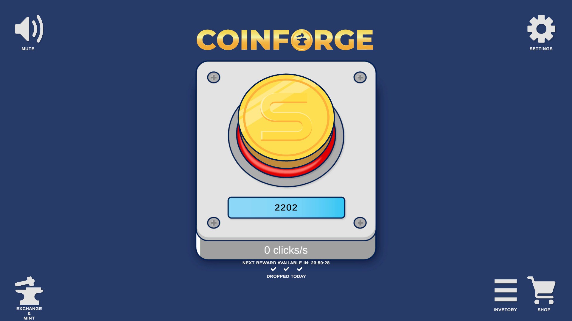 CoinForge is a clicker game where you generate S-coins! Click to earn S-coins and exchange them. Try to get your S-Coins every day with every 100 Clicks you press. 3 is max per day. It's time to forge fortune with Coin Forge. Join our community on Discord and help shape the game!