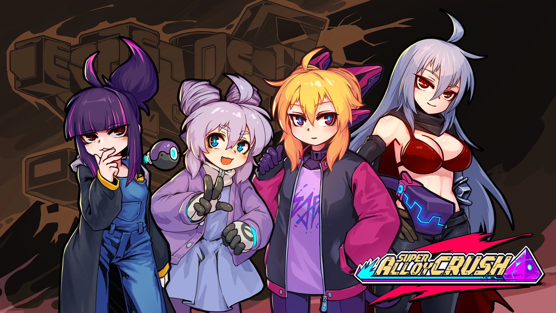 Super Alloy Crush is a fast-paced 2D roguelike brawler inspired by classics like Mega Man X. Play as Kelly and Muu (No.02) to defeat enemies and obtain the ultimate cosmic treasure: Planet AE-38. Alone or with a friend in local co-op, get ready for your biggest challenge yet!