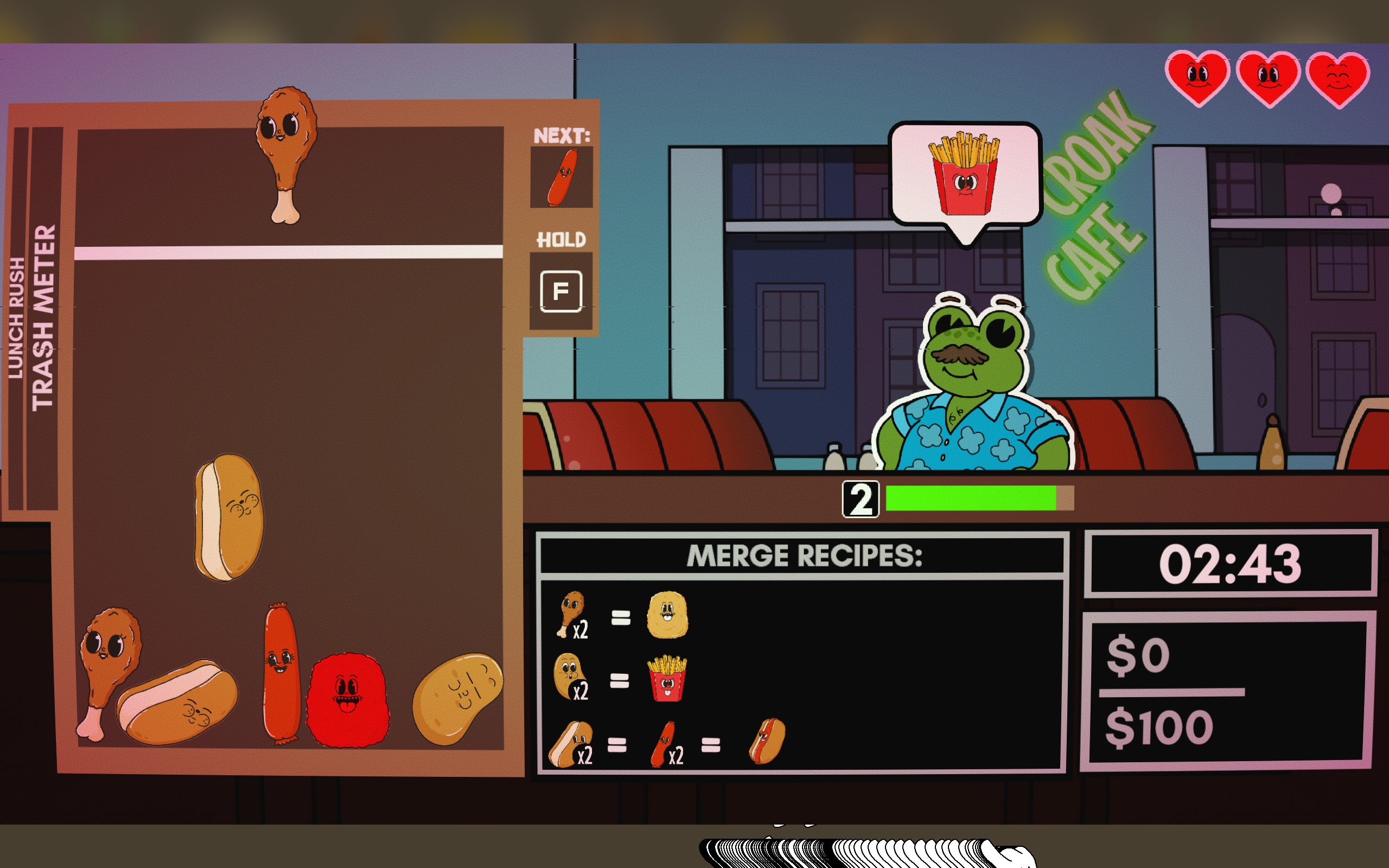 CROAK CAFE: FROM POND TO PLATE is a thrilling roguelike game where you craft dishes under time pressure to serve demanding frogs. Upgrade your skills and face challenging bosses in this fast-paced culinary adventure. Can you become the ultimate chef?