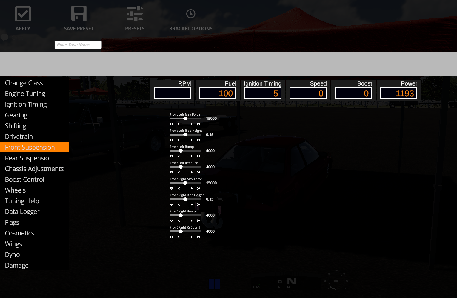 There will also be a tuning menu very similar to that of Bounty Drag Racing's