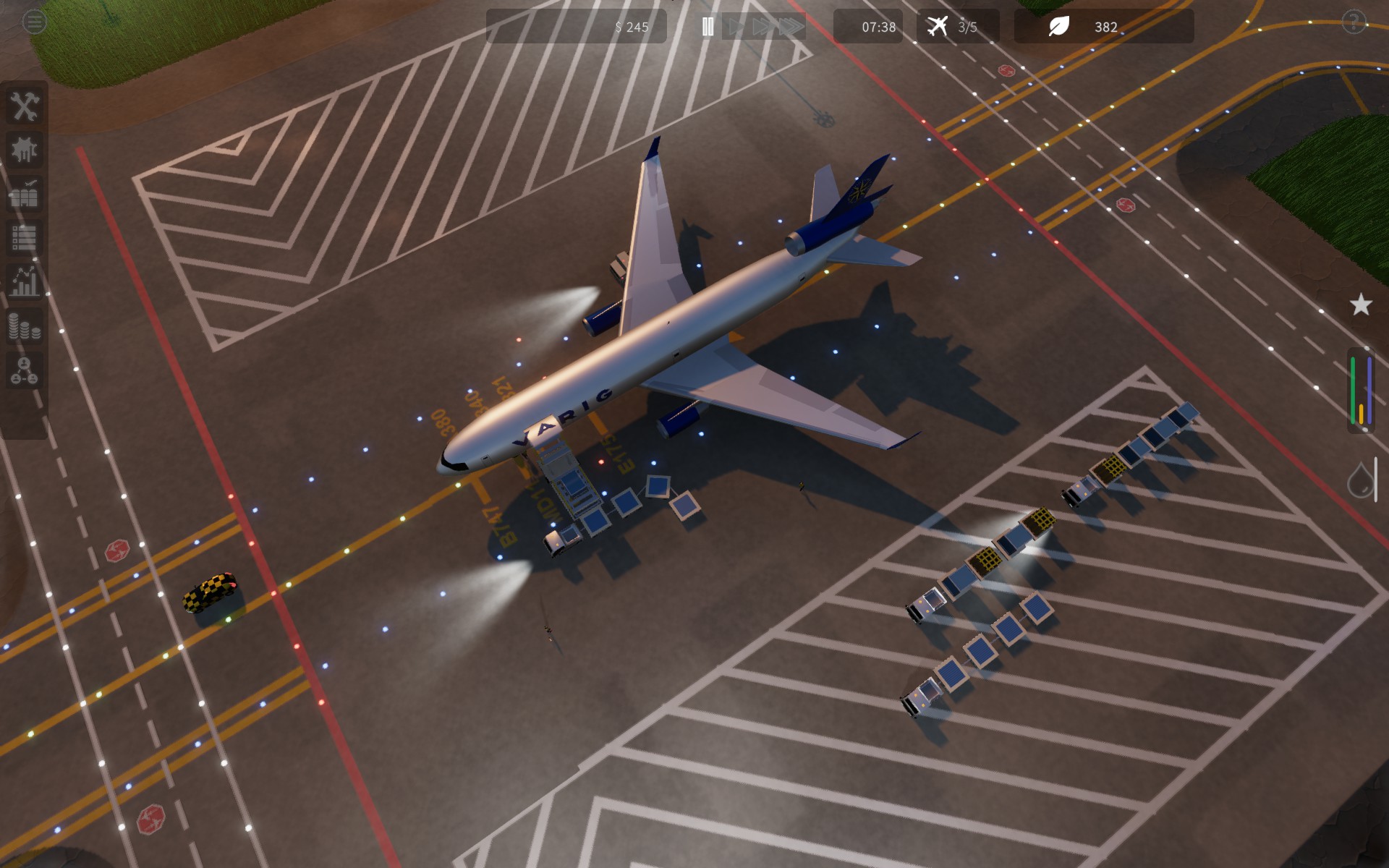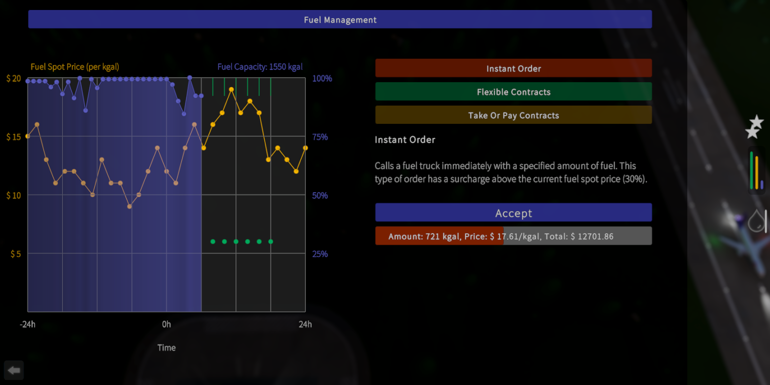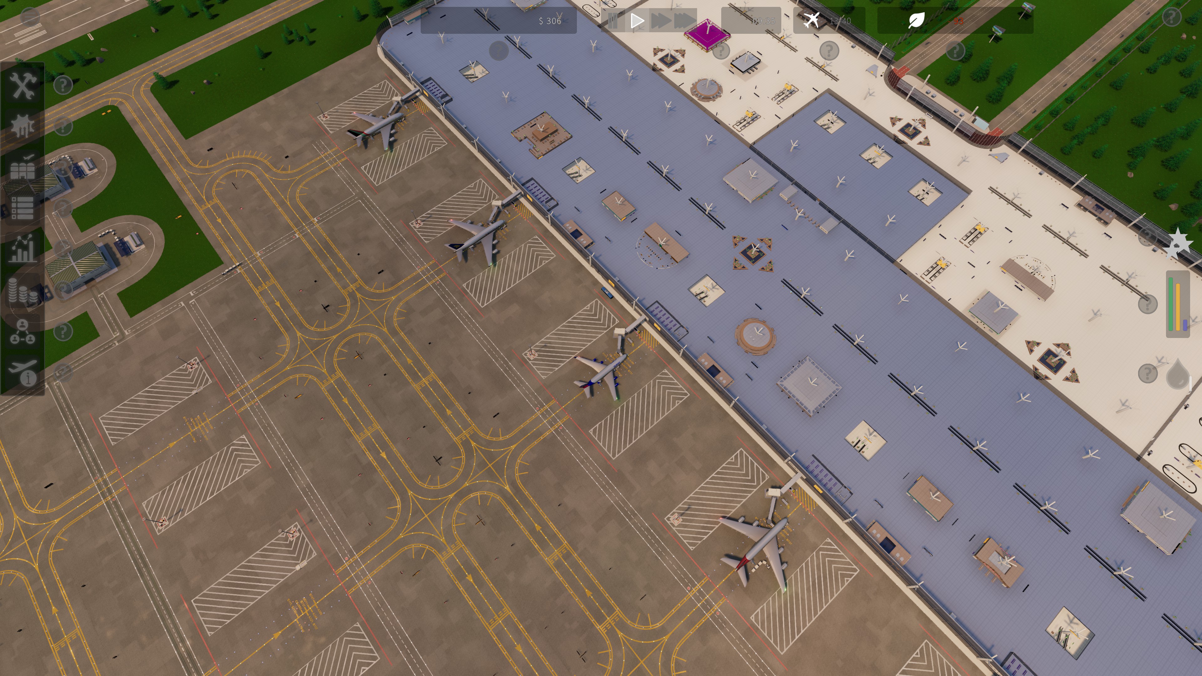 Airport building and light business tycoon game. Build up an airport providing cargo, maintenance, and passenger service. Choose which upgrades to invest in, manage policies, organize finances, optimize layouts, and balance carbon emissions.