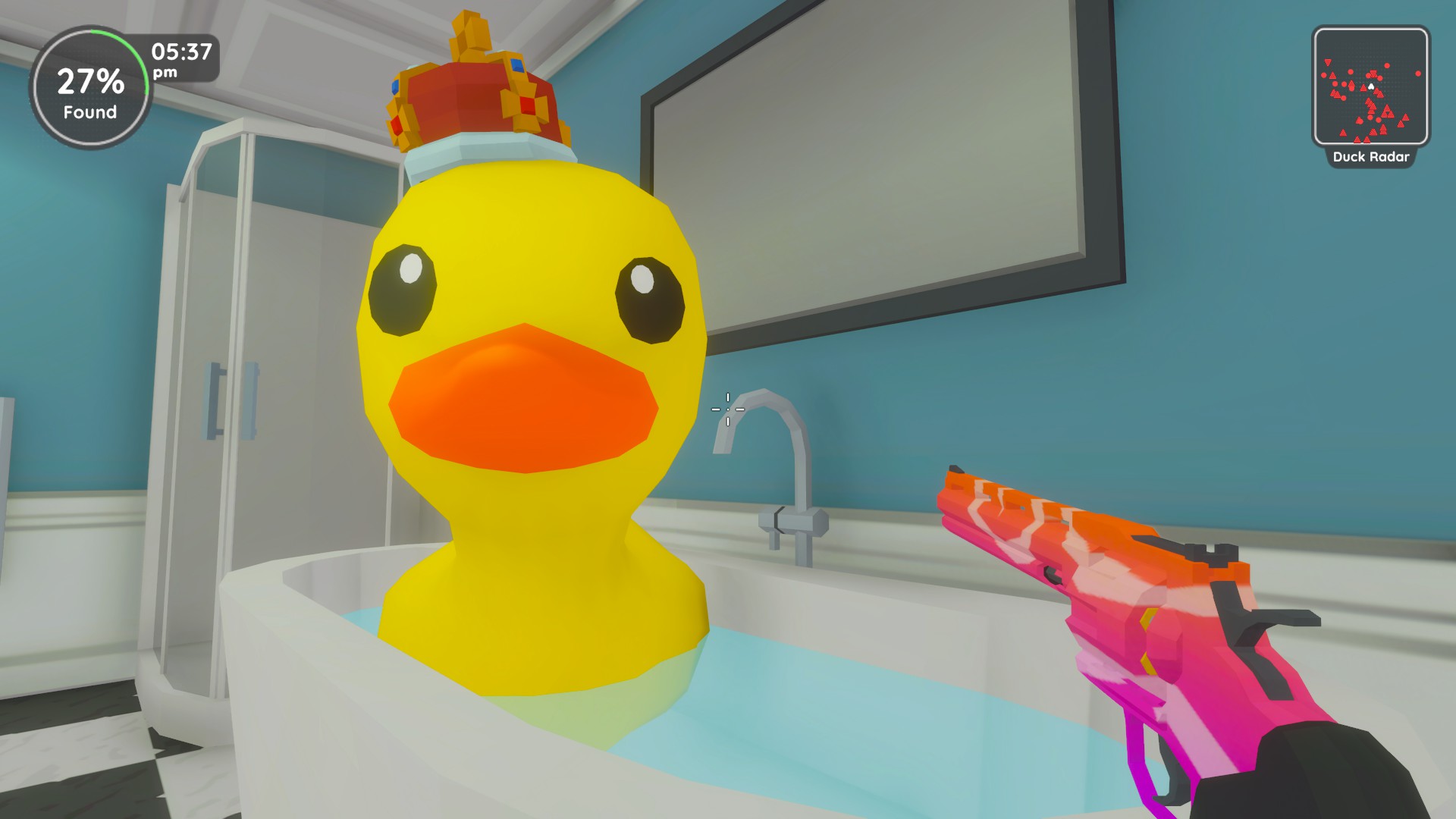 Yes! In this 3D hidden object game, you must blast 100 toy ducks! Relax, take aim, and let the feathers fly! With light-hearted gameplay and cute ducks to hunt, it's a casual first-person experience full of wholesome, family-friendly fun!